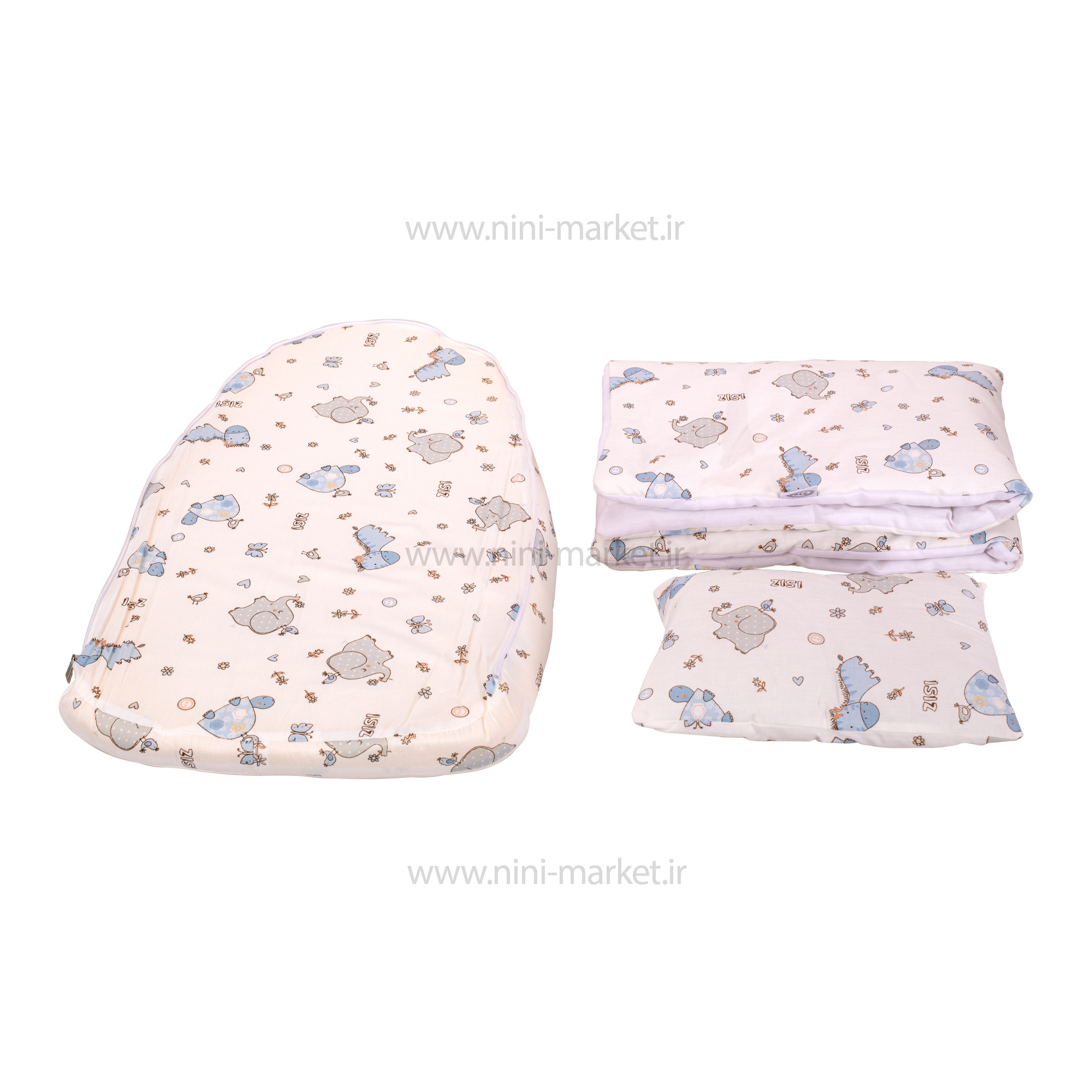بالش این ست یک بالش مناسب برای دوران بارداری است و با محافظت از شکم مادر و همچنین قرار گرفتن بین پاهای او، خوابی راحت را به مادران عزیز هدیه می کند.بالش بارداری می تواند شما را از درد کمر و پا در امان بدارد و همچنین نگرانی ضربه به شکم در خواب را نیز برطرف می کند.پس از به دنیا آمدن دلبندتان می توانید از این بالش به عنوان یک بالش شیردهی استفاده کنید.با قرار دادن بالش روی پاها و بستن کمربند پشت کمرتان، می توانید نوزاد را روی بالش قرار دهید و بدون فشار به گردن و دست های خود، به راحتی او را شیر بدهید.این مجموعه دارای یک تشک شیبدار و آنتی رفلاکس است که می توانید این بالش را به صورت گارد، دور تا دور تشک قرار دهید.با بزرگتر شدن نوزاد، بالش می تواند یک محافظ و گارد مناسب برای یادگیری نشستن او باشد.یک لحاف و یک بالش همراه این ست موجود است که برای خواب نوزاد در منزل یا بیرون قابل استفاده است.