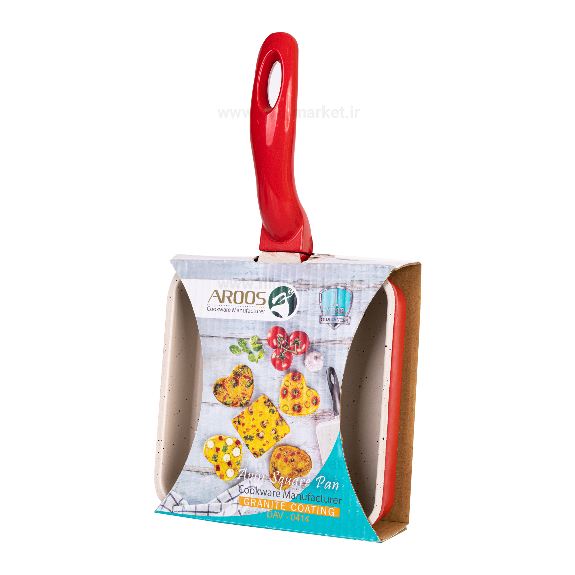 تابه چدن گرانیت مربع رنگ قرمز عروس Aroos