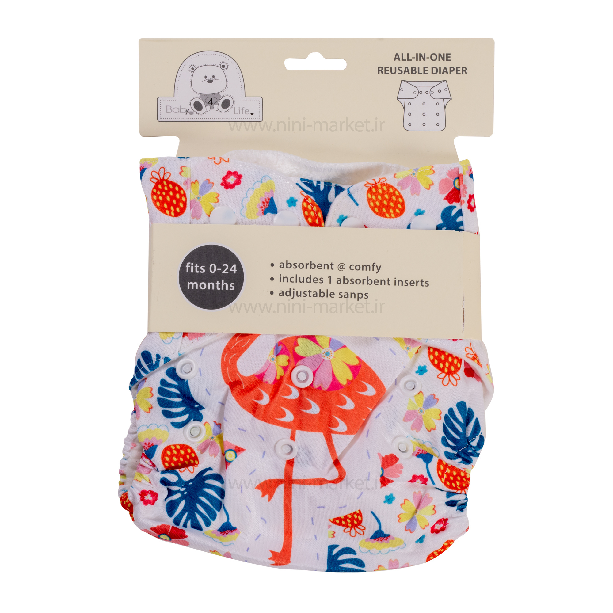 شورت های بیبی فور لایف با ساختاری همانند پوشک در قسمت ران ها دارای کش نرم و ضد حساسیت و در ناحیه شکم و کمر دارای دکمه های فشاری برای تنظیم سایز از بدو تولد تا دو سالگی می باشد. این شورت با داشتن یک لایه اضافی از جنس پنبه،قدرت جذب فوق العاده بالایی دارد،که مناسب استفاده در شب و هنگام خواب است. این لایه به راحتی از شرت جدا می شود و به تنهایی قابل شستشو می باشد. جنس لایه ی بیرونی آن صددرصد از پلی استر ساخته شده تا از پس دادن نم جلوگیری کند . قابلیت تنظیم سایز با توجه به وزن و اندام نوزاد را داراست.یکی از بزرگترین محاسن شورت آموزشی در مقایسه با پوشک، عدم خشکی آن است و از طرفی زمانی که کودک شما احساس خیسی و کثیفی کند آمادگی آن را پیدا می کند که این مساله را عنوان کند.این شورت گرمای اضافه تولید نمی کند و قطعا بهتر از نمونه های مشمایی خود است. دارای پد حوله ای داخلی با خاصیت جاذب است. قابل شستشو است و می توان از آن به دفعات استفاده کرد.با توجه به دکمه های عرضی و طولی که روی شورت تعبیه شده، شما می توانید آن را به راحتی به سایز نوزاد خود تغییر دهید. طرح روی این شورت آموزشی فلامینگو فانتزی رنگی است که مناسب یک دختر بچه است . این محصول صرفا برای گرفتن نوزاد ازمای بیبی یا پوشک نیست، بلکه در گروه سنی پایین تر، مادران به جای استفاده از پوشک، به خاطر اینکه هوای بیشتر به پای کودک بخورد از شورت آموزشی استفاده می کنند.