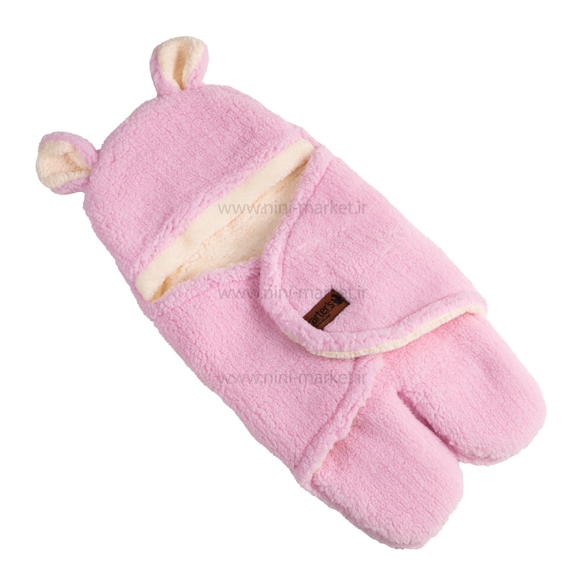 پتو قنداقي طرح تدي رنگ صورتي برند Carters یک محصول بسیار کاربردی برای کودکان تازه متولد شده اند است .ترکیب پارچه ی اصلی این کار مخمل پولیشی به رنگ صورتی و کرم است که زیبای آن را صد چندان کرده است. کلاه این قنداق به مثل خرگوش دو گوش دارد که یک سره به بدنه آن وصل است. دو عدد چسب در قسمت چپ و راست پتو قنداق کارترز کار که بعد از این که کودک دلبندتان را داخل آن قرار می دهید به صورت ضربدری روی هم قرار میگیرده این ویژگی عالی این پتو قنداق کارترز است که بعد از روهم قرار دادن چسب ها کودک نمیتواند دست هایش را بیرون از پتو قنداقی بیاورد و همین کار موجب میشود کودک آرام تر بخوابد و سرما به بدن آن نفوذ پیدا نکند. قسمت پایین این قندان طوری طراحی شده که پاهای کودک اذیت نمیشود و به راحتی میتواند پاهایش را تکان دهد.توجه داشته باشید که استفاده از پتو قنداق کارترز به جای پتوی دورپیچ برای شما بسیار آسان تر است. قنداق کارترز در مقایسه با پتوی دورپیچ محفوظ تر است چرا که تمام بدن کودک را در بر می گیرد.