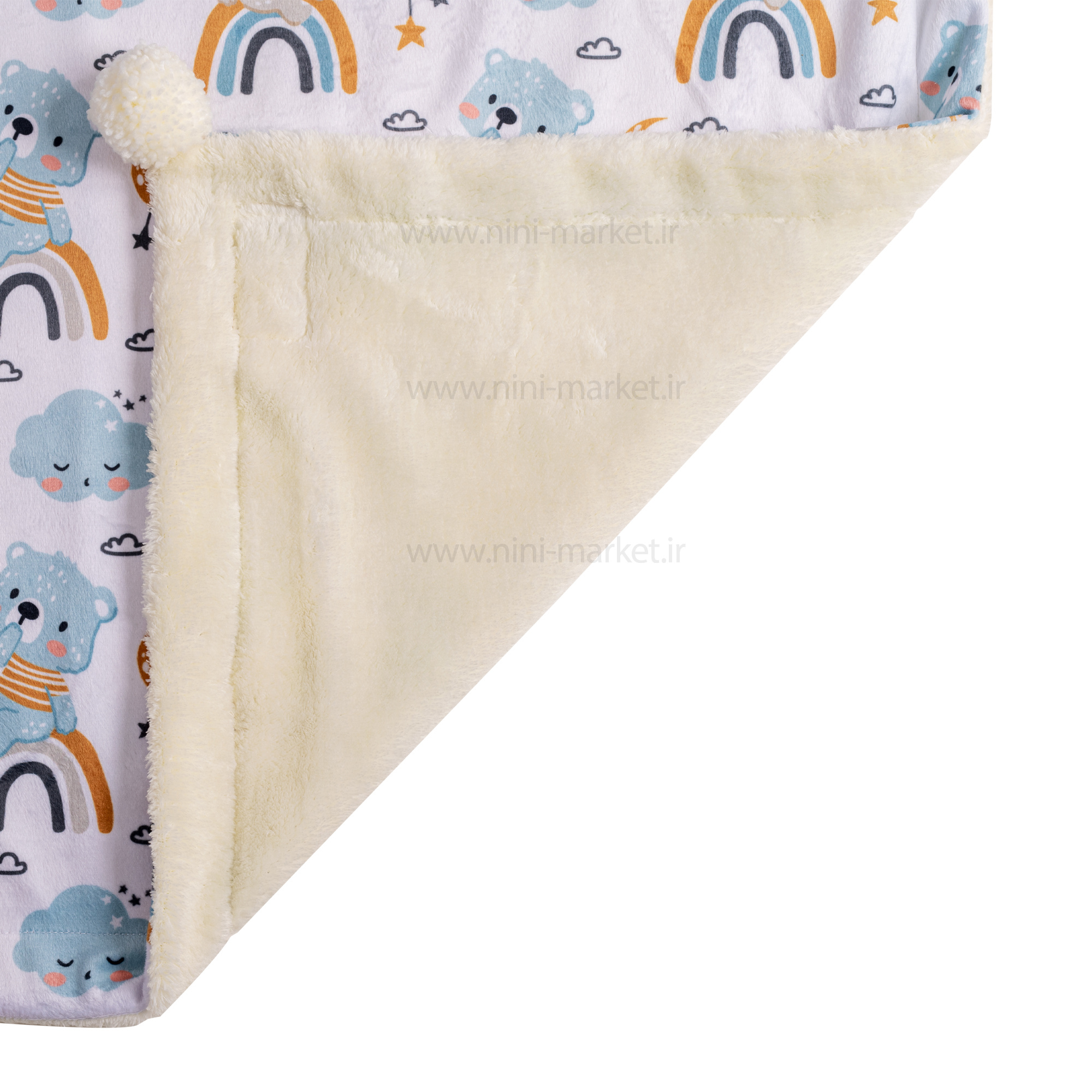 پتو دورپيچ مخمل طرح خرس رنگين کمان رنگ سفيد برند Carters یک پتو بسیار لطیف و گرم و یک کالا مهم در سیسمونی نوزاد است. نوزادان به ویژه در ماه های اول زندگی شان معمولا بیشتر ساعات روز را خواب هستند ، بنابراین پتو یکی از لوازم ضروری است که باید برای آنها تهیه شود. انتخاب پتوی مناسب نوزاد برای آسایش همچنین امنیت او بسیار ضروری است. هنگام خرید پتو باید به یکسری نکات توجه کنید تا کوچولوی دلبندتان خواب راحت ایمنی داشته باشند. پتوی نوزاد باید از جنس هایی تولید شده باشد که پوست حساس کودک را آزار ندهد و قابل تنفس باشد. برای تشخیص دادن قابل تنفس بودن پتو ، می توانید پتو را در برابر منبع باد مانند پنکه قرار دهید ، اگر نسیم باد را از طرف دیگر پتو احساس کردید ، جنس آن تنفسی است. فروشگاه آنلاین نی نی مارکت برای حفظ آرامش و امنیت کودک شما پتو دورپیچ مخمل پولیشی کارترز را در لیست محصولات خود قرار داده تا با استفاده از آن کودک شما خواب شیرین و توام با آرامش را تجربه کند. پتو دورپيچ Carters ضد حساسیت بوده و با پوست لطیف و حساس کودکتان سازگار است. پتو کارترز دارای طرح و رنگ زیبا و دوست داشتنی و دارای جنس بسیار نرم و لطیف است و در هرگوشه این پتو یک توپک کار شده که زیبایی آن را چندین برابر کرده است .این پتو بافت زیبا بسیار سبک و قابل شستشو به صورت دستی و ماشینی می باشد .
