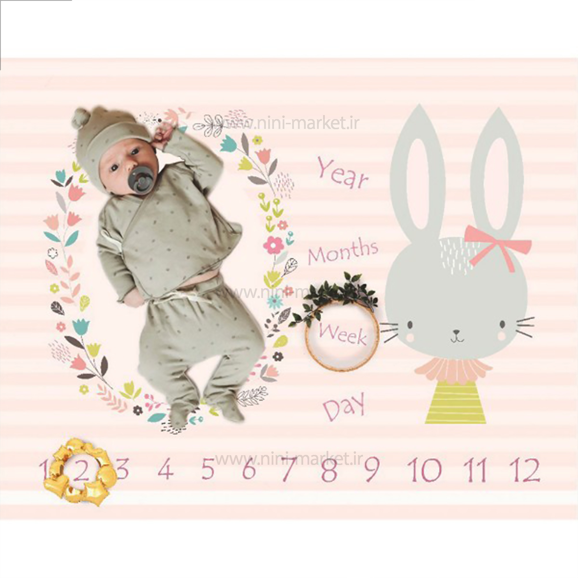 پارچه ماهگرد طرح خرگوش و پاپیون زمينه گلبهی کد 50111 برند LP Kids روشی خلاقانه برای ثبت سن ماهانه کودک شماست. به شما کمک میکند تا ماه به ماه با یک پشت زمینه زیبا از کودکتان عکسهای فوق العاده بگیرید. پارچه ماهگرد نوزاد را روی زمین پهن می کنید، نوزاد خود را روی آن قرار می دهید و در صورت تمایل اطراف دلبند تان را با وسایل خلاقانه مانند عروسک و چیزهای شاد می چینید. و برای برجسته سازی سن نوزاد از یک قاب عکس، زیور آلات، گل، برگ، اساب بازی و موارد دیگر می توانید استفاده نمایید. پارچه ماهگرد LP Kids روشی عالی برای ایجاد آلبوم عکس یادگاری است. پارچه ماهگرد نوزاد دارای تنوع و رنگ بندی فوق العاده شاد هستند، به طوری که که دیگر نیازی به قرار دادن المانهای مختلف بر روی پارچه نمی باشد. سعی شده در طرح ها از المانهای مرتبط و سبک های خاصی استفاده شود. لحظه هایی توی زندگی هست که می دونیم قرار از قشنگ ترین خاطراتمون باشد. با پارچه ماهگرد طرح خرگوش این لحظات تکرار نشدنی را به زیباترین شکل همیشگی کنید.