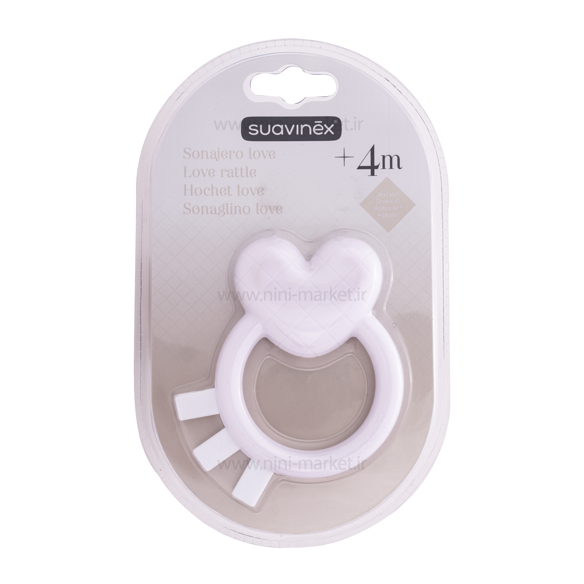 دندانگیر جغجغه ای سواوینکس Suavinex طرح قلب رنگ سفید