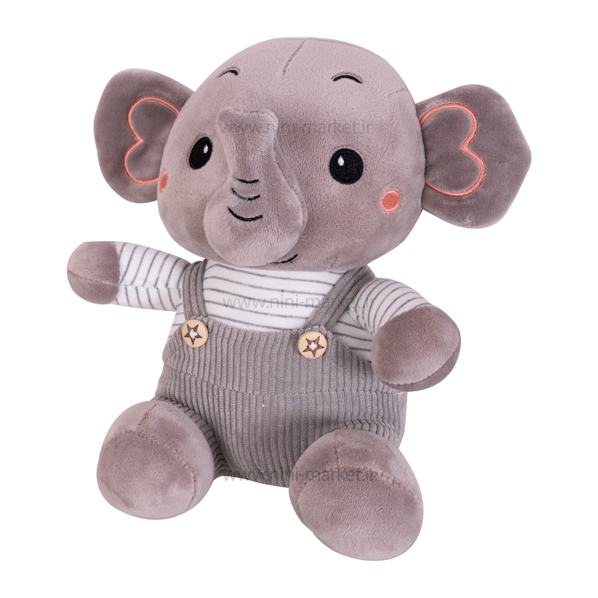 عروسک طرح فیل مدل گوش قلبی 30 سانتی متر رنگ طوسی