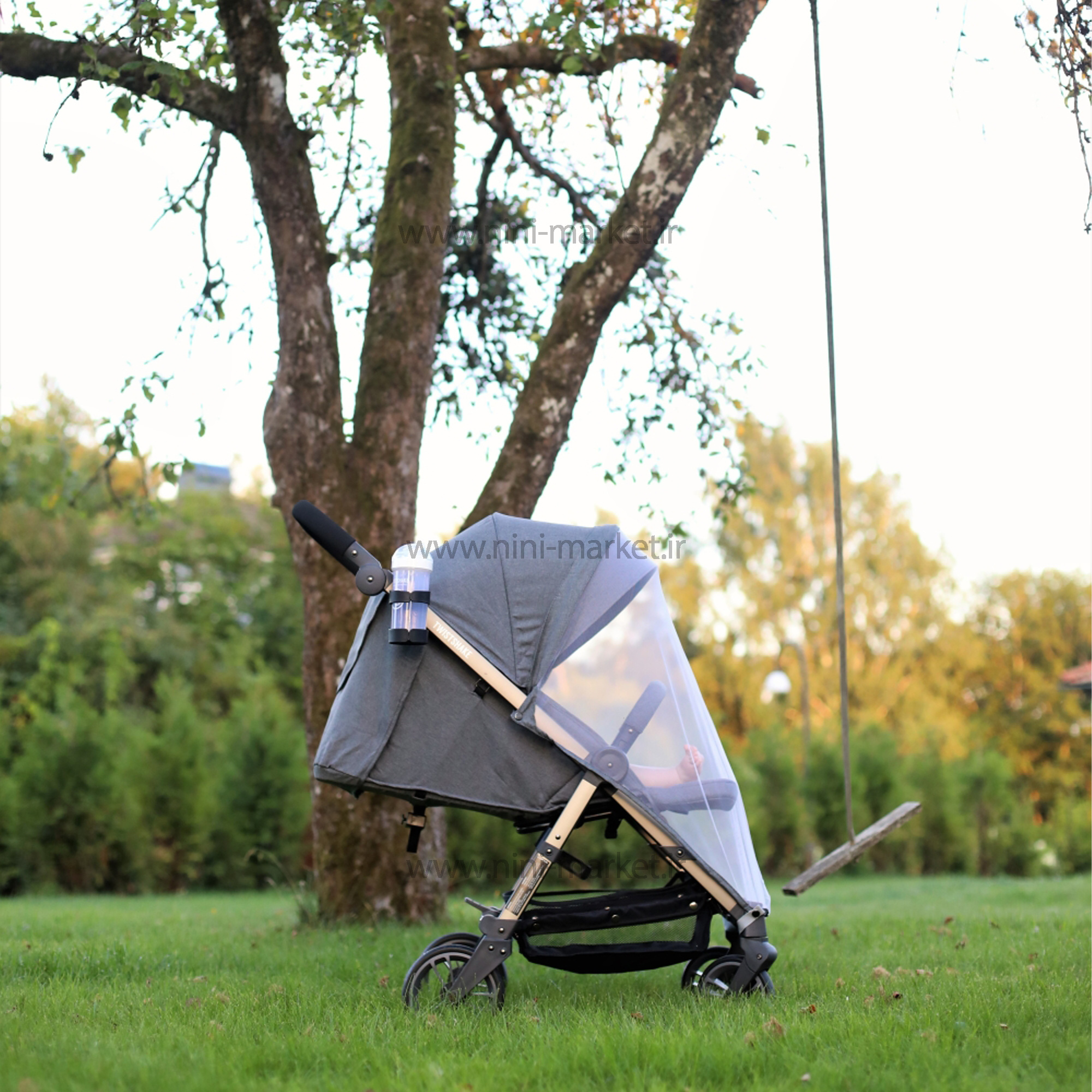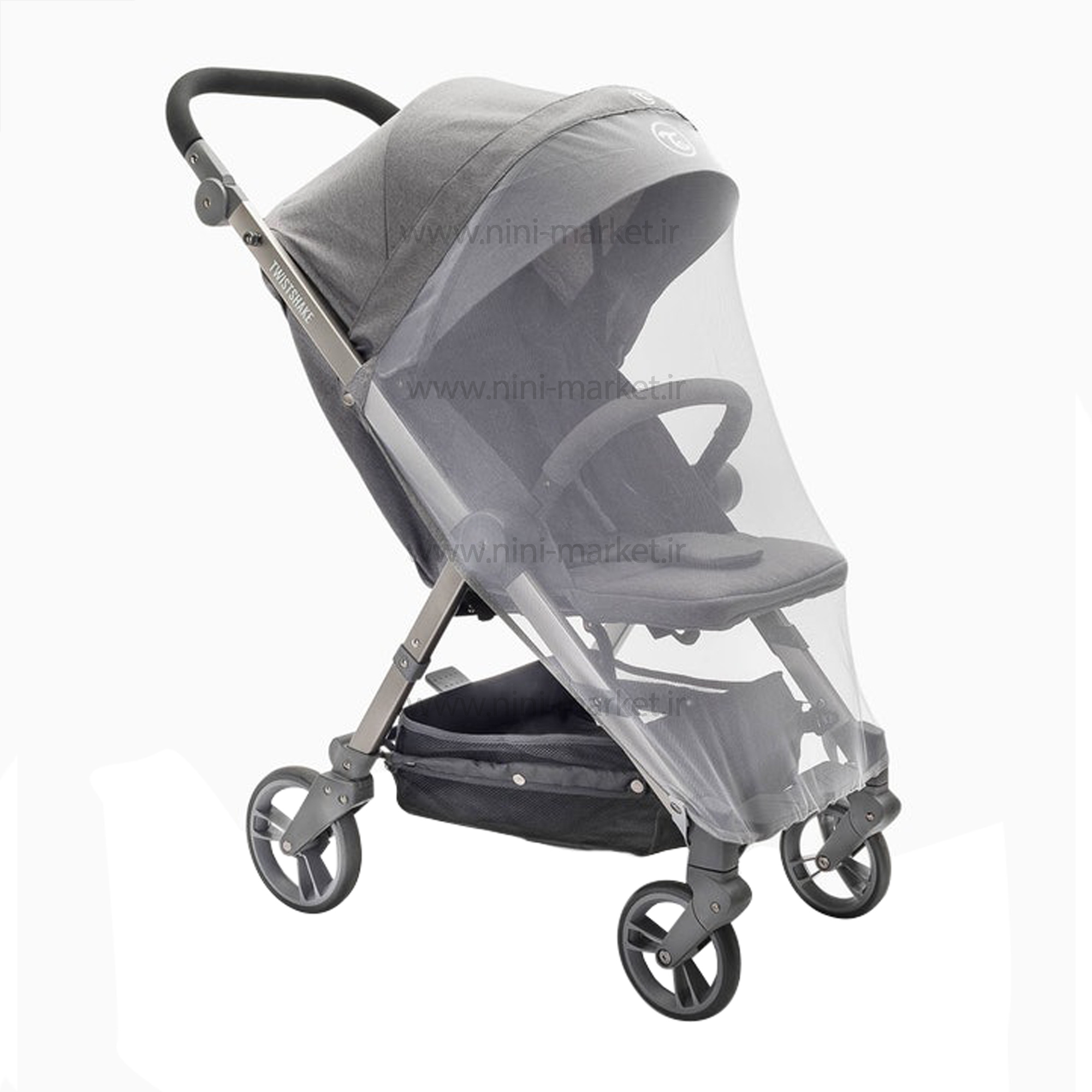 پشه بند : پشه بند کالسکه تویست شیک بهراحتی با استفاده از دکمههای تعبیه شده به قسمت بالا و پایین بدنه کالسکه متصل میشود و فضایی ایمن برای کودکان دلبند شما ایجاد میکند. پشه بند تویست شیک از یک توری ساخته شده است که دید مناسبی برای کودک ایجاد خواهد کرد و تنفس کودک را نیز مختلف نخواهد کرد. این پشه بند بسیار سبک وزن بوده و فضای بسیاری کمی اشغال میکند. در نتیجه میتوانید آنرا بهراحتی با خود حمل کنید و در صورت نیاز از آن استفاده نمایید.