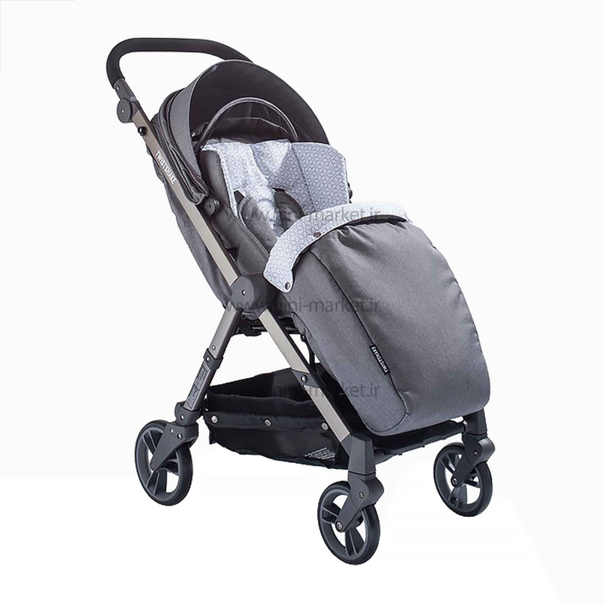 اکسسوریهای موجود در پکیج کالسکه تویست شیک طوسی رنگ: