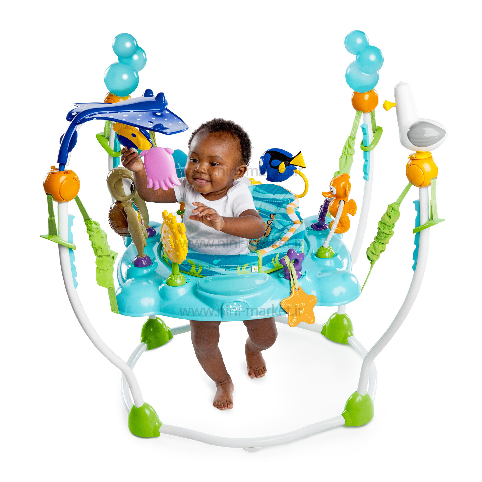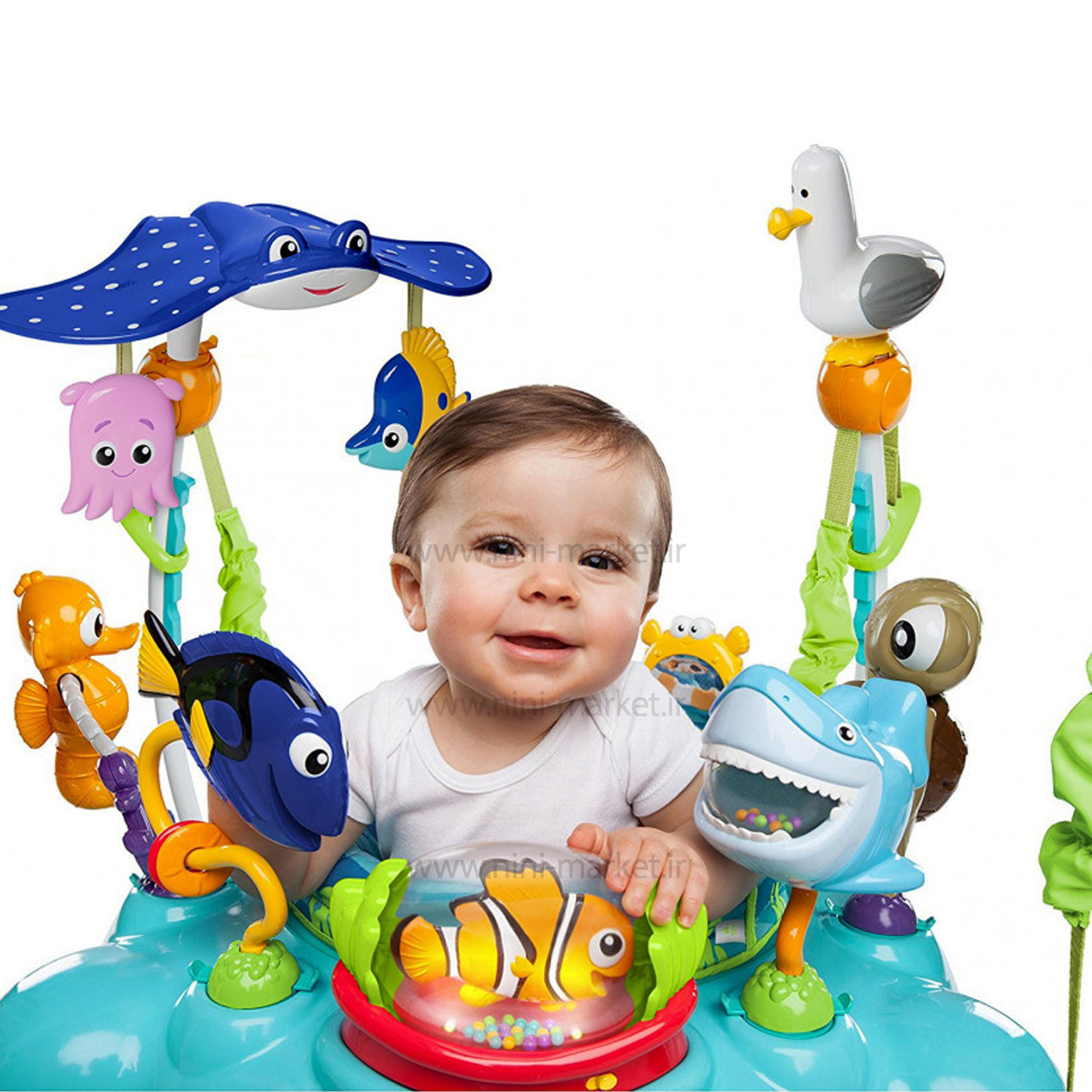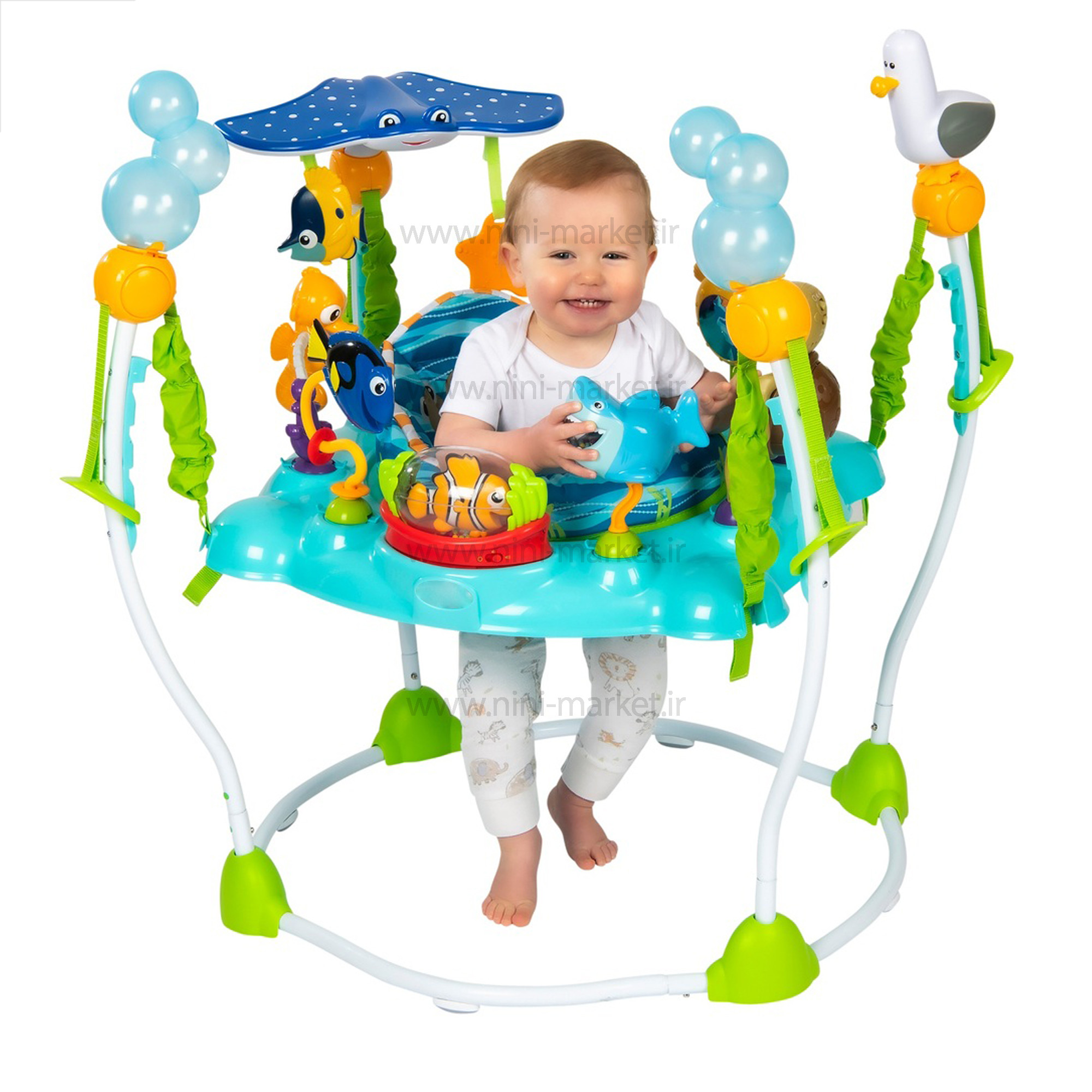 جامپينگ طرح حيوانات دريايي کد 60701 برند Disney baby شامل بیش از 13 اسباب بازی جذاب و فعالیت برای ماجراجوی کوچک شما است. توپ غلتکی نمو با نورها، ملودی ها، مهره های تند و تیز و همه شخصیت های مورد علاقه شما در نمو، حواس کودک را القا می کند. بروس کوسه دوستدار یک اسباب بازی ضامن دار با لقمه ای از مهره های رنگارنگ است. صفحه تعاملی Squirt دارای کلیدهایی است که روشن می شود و آهنگ هایی با مضمون اقیانوس پخش می کند. ماهی پف دار دارای آینه ای برای خودیابی در کنار سینی اسباب بازی و دندان گیر ستاره دریایی شکل است. یک اسباببازی چرخان شلدون و شکار مهره، دوری، گروه بازیگران شخصیتهای محبوب نمو را تکمیل میکند! پشتی صندلی بلند حمایت بیشتری را برای کودک شما فراهم می کند و با یک صندلی که 360 درجه می چرخد، سرگرمی اقیانوسی در هر جهت وجود دارد! چهار گزینه تنظیم ارتفاع برای رشد با کودک در دسترس است. اجازه دهید کودک با نمو و دوستانش اقیانوس را کاوش کند. محصولات Disney Baby تخیل را به لحظات روزمره می آورند. آنها با ترکیب شخصیت های کلاسیک که والدین را به یاد دوران کودکی خود می اندازند، میراث داستان سرایی دیزنی بیبی را منعکس می کنند. این محصولات کودک برای حمایت از ارتباط عاطفی بین والدین و نوزاد از طریق داستانهای مناسب سن، مشارکت شخصیتهای شایان ستایش، و محیطی دنج و پرورشدهنده طراحی شدهاند. اما بهتر از همه، محصولات دیزنی شما و شگفتیهای کوچکتان را از طریق خاطرات دوران کودکیتان و خاطرات جدید درخشانی که با هم میسازید، به هم متصل میکنند. این وسیله توسط 6 باتری نیرو خود را تامین میکند.