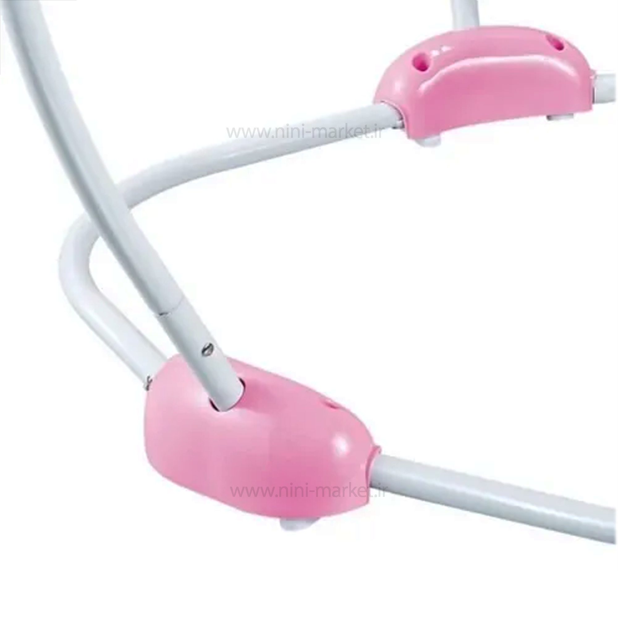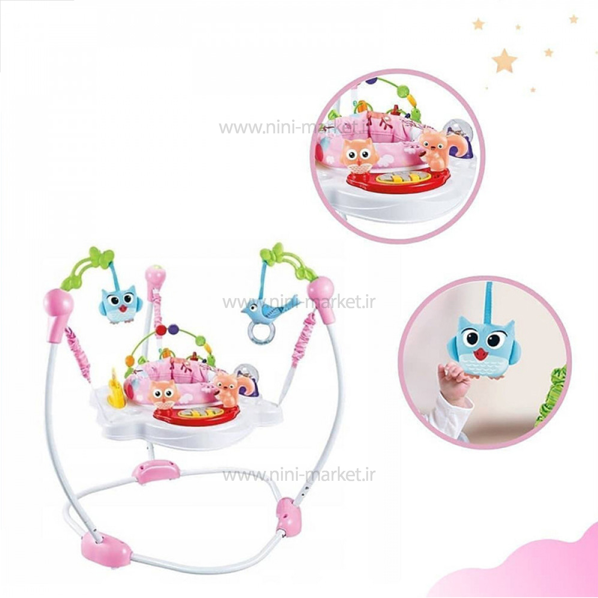 جامپينگ صورتی برند خارجی کودک سرگرمی های مختلفی را برای کودک شما فراهم می کند. اسباب بازی های چرخان، اسباب بازی های آویزان، و تخته موسیقی. صندلی الاستیک دارای عملکرد چرخش 360 درجه است و می توان آن را در 3 موقعیت مختلف ارتفاع تنظیم کرد. مدت زمان جلسه حداکثر 20 دقیقه می باشد. فقط برای کودکانی که می توانند بدون کمک روی پای خود به ایستند و نمی توانند راه بروند یا از محصول بالا بروند و از آن خارج شوند استفاده کنید! این محصول باید فقط تحت نظارت مستقیم یک بزرگسال استفاده شود. جامپینگ صورتی خارجی چندکاره هوشمند از اسباب بازی ها و فعالیت های سرگرم کننده را به شما می آورد تا زمان پرش را لذت بخش تر کند. جامپینگ کودک صورتی دارای صندلی چرخان 360 درجه است تا از اسباب بازی های تعبیه شده روی قاب لذت ببرید. اسباب بازی های رنگارنگ و آهنگ ها و نورهای موسیقی حواس کودک را تحریک می کند. این جامپینگ خارجیبه کودک کمک می کند تا مهارت های حرکتی خود را توسعه دهد و تمرین پا را برای یک ناز آسان تر و لذت بخش تر کند. این جامپینگ دارای گواهینامه EN71 برای ایمن تر کردن زمان سرگرمی است. فنرهای استفاده شده نرم هستند که به کودک آسیبی نمی رساند. کودک می تواند از بازی با تمام اسباب بازی ها به صورت 360 درجه برای بازی آسان لذت ببرد.دارای پایه فولادی محکم زمان بازی را ایمن تر می کند. اسباب بازی های رنگارنگ به کودک کمک می کند تا حواس رنگ را تحریک کند و بازی با آن مهارت های حرکتی را تقویت می کند. پنل موزیکال آن توسط سه باتری انرژی خود را تامین میکند. برای دیدن دیگر جامپینگ ها میتوانید بروی کلمه جامپینگ کلیک کنید. وزن قابل تحمل این جامپینگ صورتی 12 کیلوگرم است.