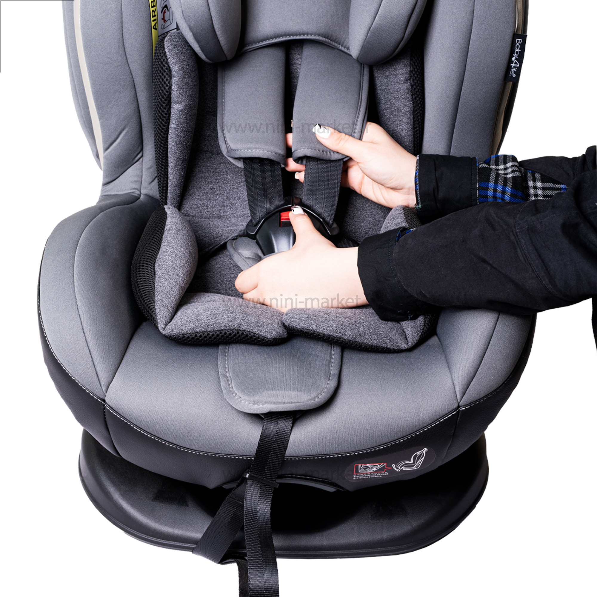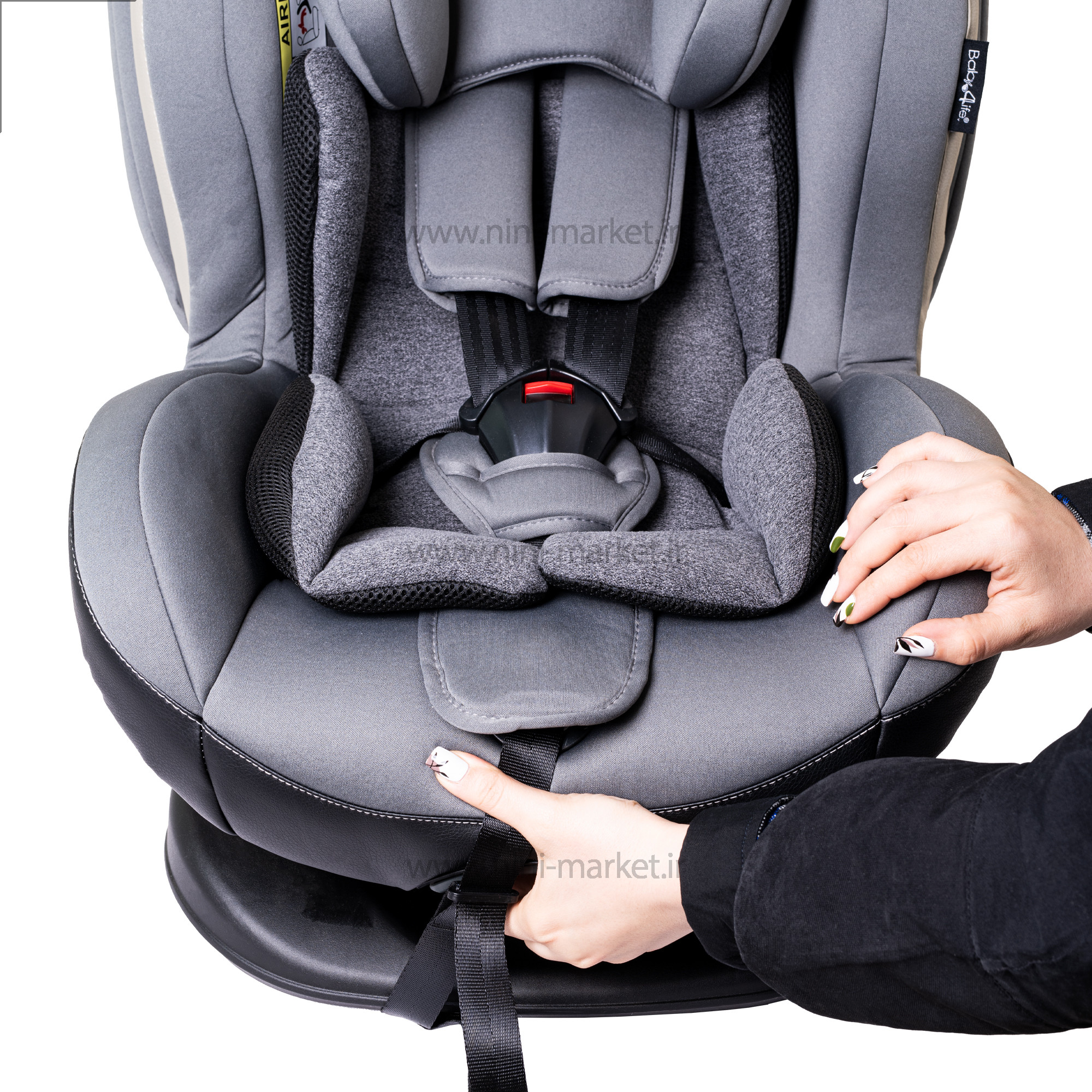 صندلی ماشین تاج دار بی بی فورلایف baby4life رنگ طوسی روشن