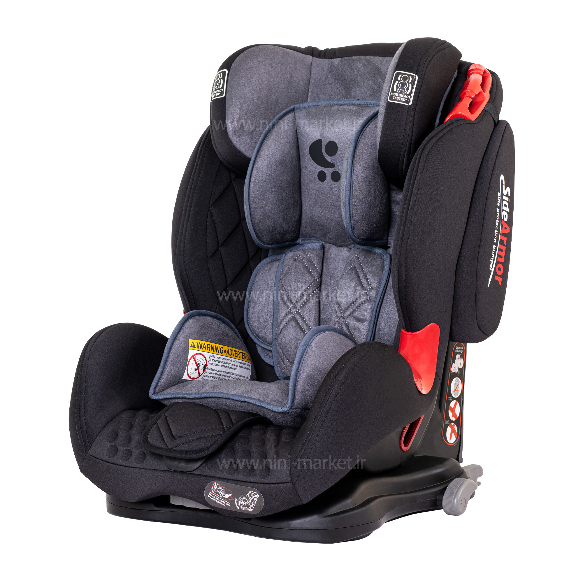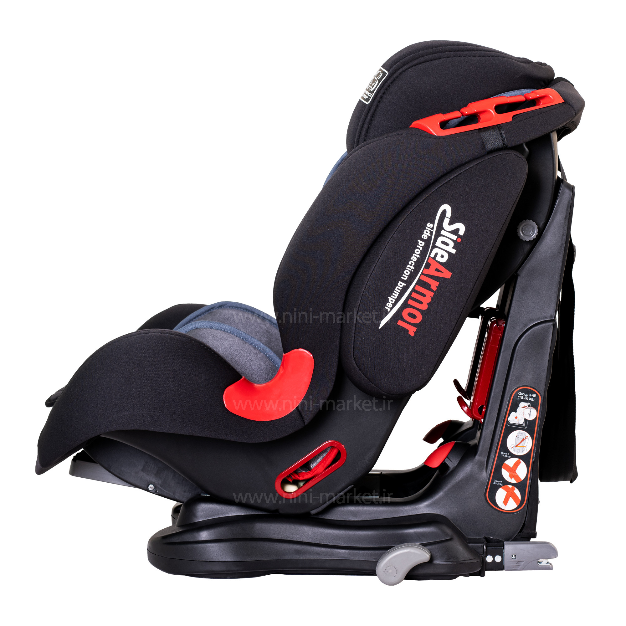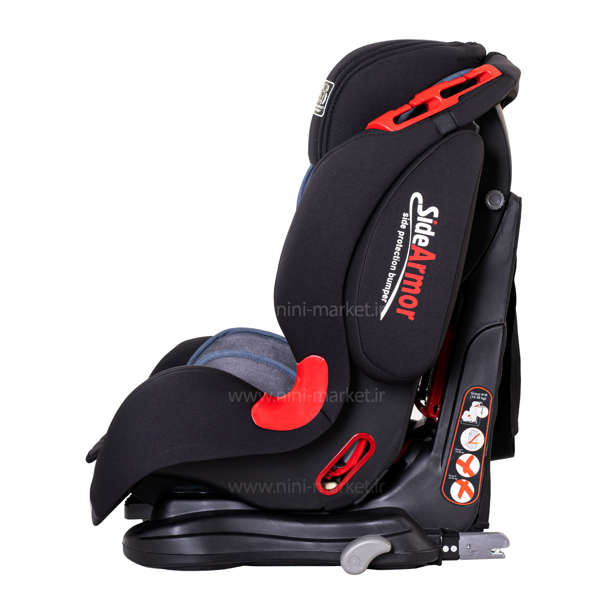 • مزیت : قابلیت تنظیم چهار حالته پشتی- قابلیت نصب توسط کمربند خودرو یا ایزوفیکس قابلیت استفاده در هر نوع خودرویی- دارای کمربند ایمنی 5 نقطه ای آنتی شوک- دارای جای سر با قابلیت تنظیم نسبت به قد کودک- دارای کمربند ایمنی Y شکل می باشد که ضمن داشتن اتصال چندگانه مستحکم- دارای پدهای شانه برای راحتی کودک