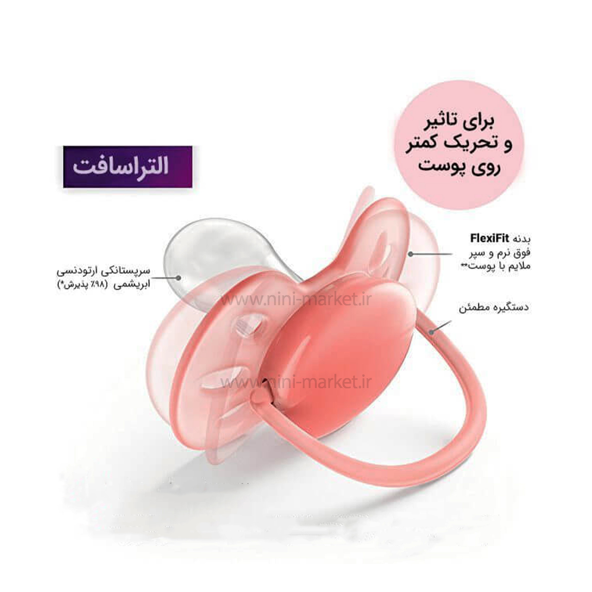 پستانک Ultra Softطرح ستاره طوسي 18-6 ماه اونت AVENT بی مزه و بی بو هستند که آن ها را برای کودک شما مناسب ترین می کند. نوزاد تازه متولد شده میل به مکیدن دارد. بعضی از نوزادان حتی قبل از تولد، انگشت شصت خود را میمکند زیرا مکیدن باعث آرامش کودک میشود. اکثر والدین برای پاسخ به این میل نوزاد، از پستانک استفاده میکنند اما باید بدانید که مکیدن تأثیر مستقیم بر روی فک نوزاد میگذارد. بنابراین استفاده از پستانکهای غیر استاندارد، میتواند خسارت های جبران ناپذیری برای کودک شما بوجود بیاورد. پستانک فیلیپس اونت، ارتودنسی بوده و علاوه بر اینکه هیچ گونه آسیبی به دندان های کودک شما نمیگذارد، به رشد و شکلگیری طبیعی دندان کمک میکند. زیبایی پستانک برای نوزاد بسیار مهم است و میتواند به پذیرش آن توسط کودک کمک کند. اما همانطور که میدانید اولویتهایی مهمتر از زیبایی برای انتخاب پستانک وجود دارد. مثلاً وزن سبک، ابعاد مناسب، مجرا برای عبور هوا و ارتودنسی بودن از مواردی است که باعث میشود کودک با پستانک احساس راحتی کند و پستانک خود را دوست داشته باشد. پستانک الترا سافت فیلیپس اونت، جدید ترین پستانک فیلیپس اونت، تمام ویژگیهای یک پستانک خوب و استاندارد را دارد و شما میتوانید از این پستانک برای نوزاد خود بدون هیچ نگرانی استفاده کنید. مهمترین ویژگی پستانک الترا سافت که این پستانک را از سایر رقبا جدا کرده، بافت نرم و ابریشمی سر پستانک است که لذت مکیدن را برای نوزاد چند برابر میکند و علاوه بر آن موجب بهتر ماندن و نیفتادن پستانک از دهان نوزاد میشود. طبق آخرین تحقیقات فیلیپس اونت، ۹۸درصد از نوزادان بهراحتی این پستانک را پذیرفته اند. این مدل پستانک با طراحی زیبای خود میتواند سلیقه مادرانی باشد که به شیک بودن کودک خود اهمیت می دهند. کمپانی فیلیپس اونت بر روی لبهی پستانک الترا سافت اونت، چهار مجرای هوای بزرگ تعبیه کرده که تعریق، تحریک و سوزش پوست کودک شما را کاهش میدهد. همین امر این پستانک فیلیپس اونت را به بهترین انتخاب برای مادرانی که نوزادشان پوست حساس دارند تبدیل کرده است. فیلیپس اونت برای پوشش انواع سلیقه ها، پستانک الترا ایر اونت را در طرح ها و رنگهای متنوع طراحی کرده و شما میتوانید بر اساس سلیقه خود یکی از این پستانک های زیبا را انتخاب کنید. یک پستانک خوب می تواند آرامش نوزاد شما را در بسیاری از اوقات مخصوصا در شب مهیا کند. سیلیکون ماده ای نرم و شفاف است که نچسب بوده و به راحتی تمیز می شود. چنین نوک سینه ای بادوام است و برای مدت طولانی بدون از دست دادن شکل و رنگ خود به مرور زمان دوام می آورد.نوک سینه های صاف و متقارن به شکل اشک پستانک فیلیپس اونت ساختار و رشد طبیعی کام، دندان ها و لثه های کودک شما را در نظر می گیرد و حتی اگر پستانک در دهان بچرخد راحتی را تضمین می کند. حلقه نگهدارنده مخصوص باعث می شود که در هر زمان بتوانید پستانک فیلیپس اونت را بردارید. پستانک ها دارای حلقه مخصوص نگهدارنده هستند و سپرها دارای سوراخ های مخصوص تهویه برای جلوگیری از تحریک پوست نوزاد هستند.