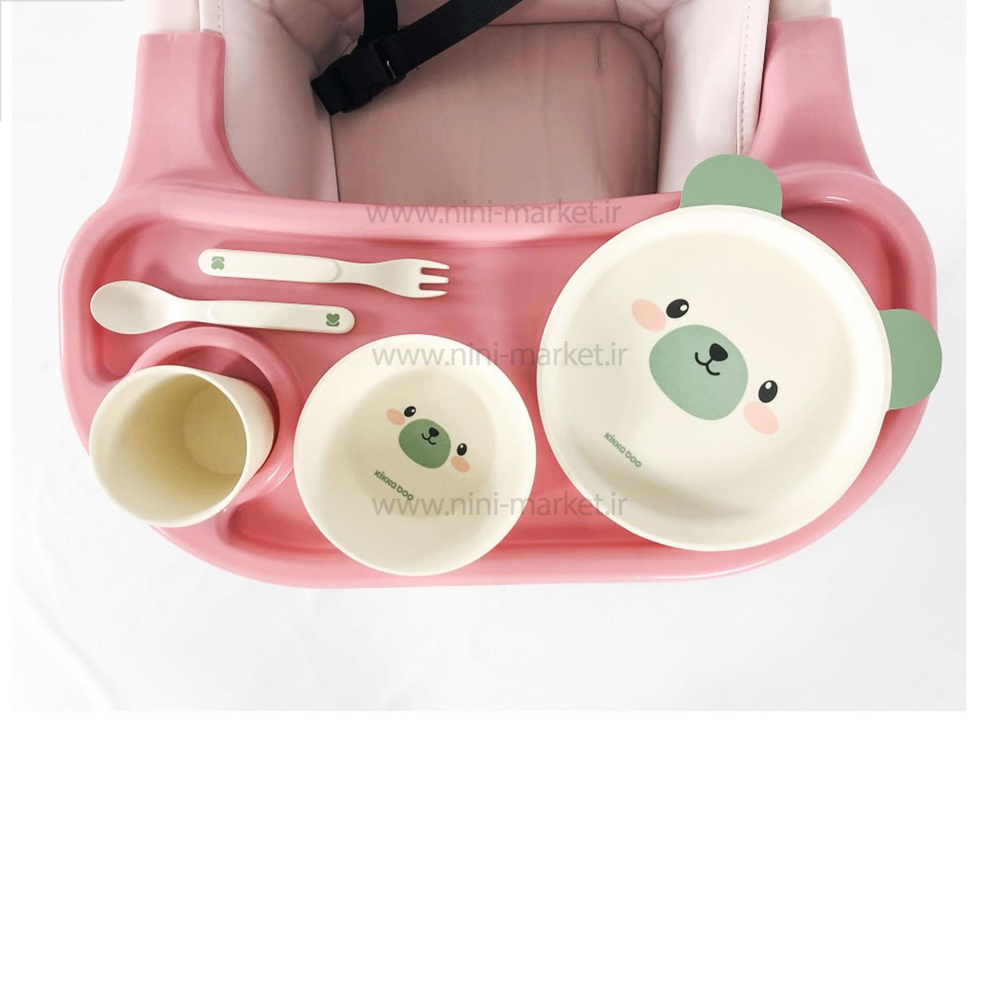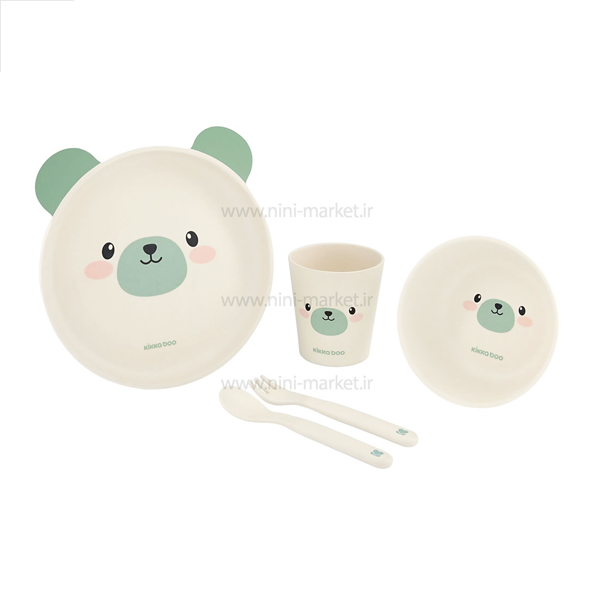 ظرف غذاي بامبو 5 تکه طرح خرس رنگ سبز کيکابو Kikkaboo