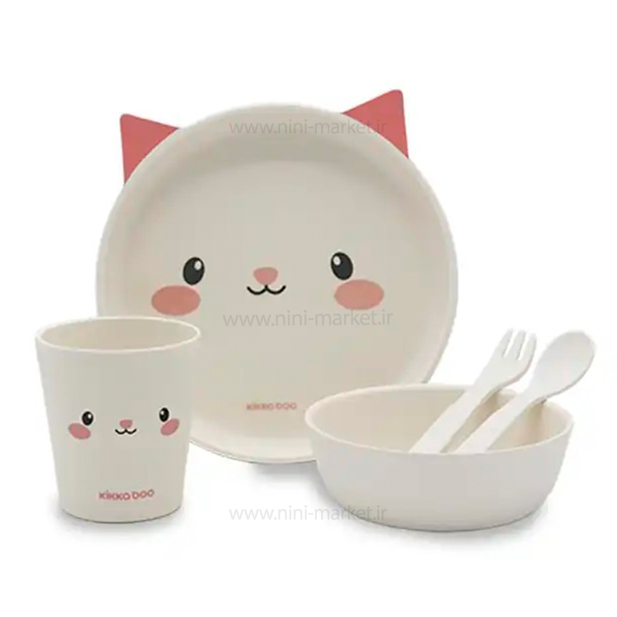 ویژگی ظرف غذاي بامبو 5 تکه طرح گربه رنگ صورتی کيکابو Kikkaboo