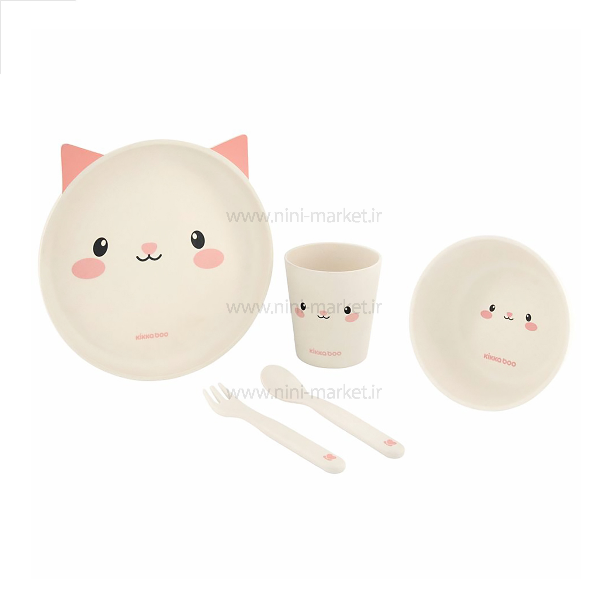 ظرف غذاي بامبو 5 تکه طرح گربه رنگ صورتی کيکابو Kikkaboo