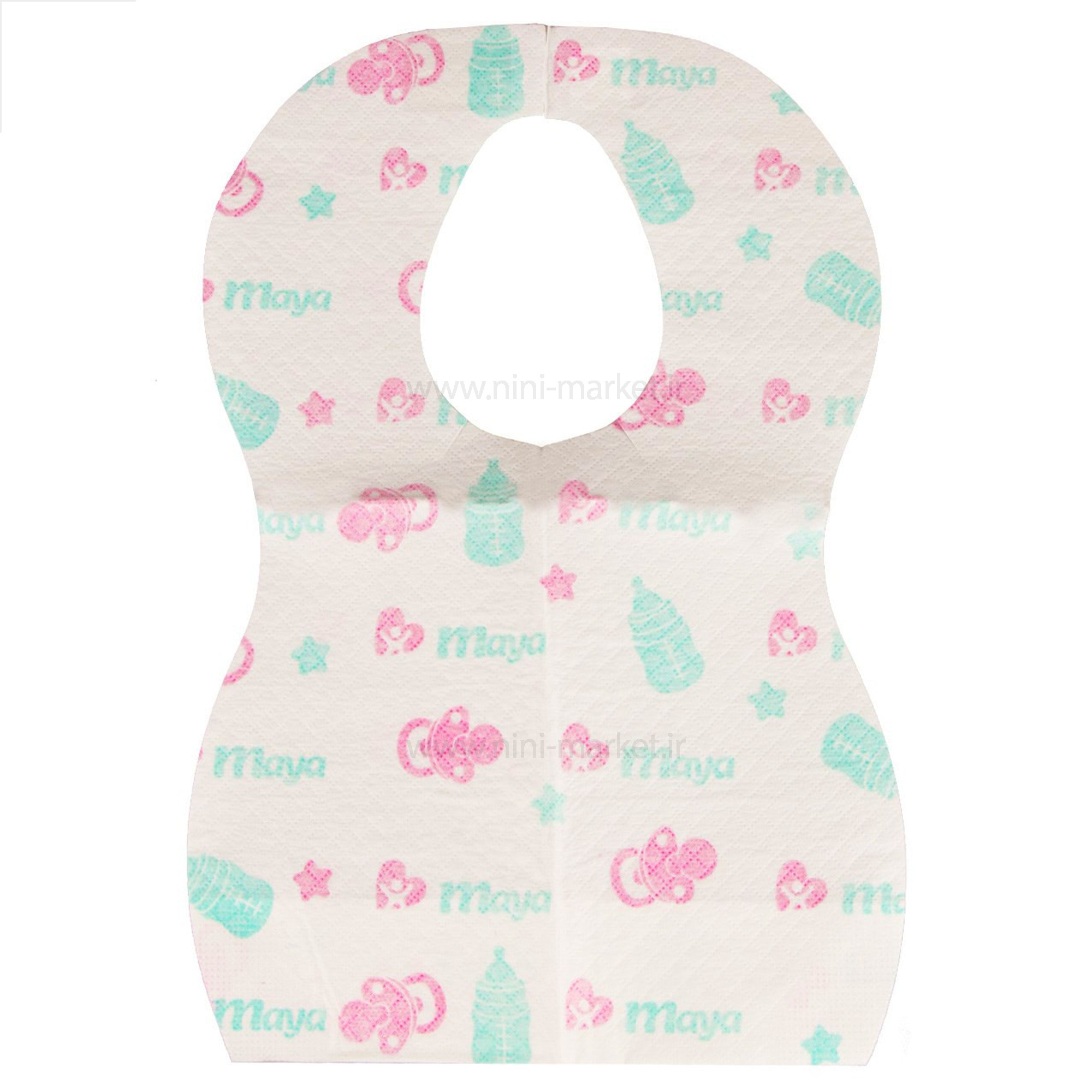 پیشبند یکبار مصرف مایا یک کالای کارآمد و زیبا برای تمیز نگه داشتن لباس کودک است. شما میتواید این محصول را در رستوران، سفر، منزل و… استفاده نمایید. جذب عالی در خرده مواد غذایی و جلوگیری از نفوذ مایعات به لباس کودک موجب راحتی و آرامش مادر و کودک است. پیشبند یکبار مصرف مایا همراه با جیب جلویی برای جلوگیری از ریختن مواد غذایی در قسمت جلوی پیشبند و همچنین نوار چسبنده با قابلیت تغییر سایز مطابق با گردن کودک و لایه های محافظ ویژه طراحی و تولید شده است. با استفاده از این محصول میتوان تغذیهای شاد، دلچسب و ایمن را تجربه کرد. پیشبندهای یکبار مصرف مایا از ۳ لایهی نرم بیرونی، لایه جاذب میانی و لایه ضد آب داخلی تشکیل شده است. داشتن لایه ضد آب داخلی شما را از عدم نفوذ مایعات به لباس کودک، خاطر جمع مینماید.