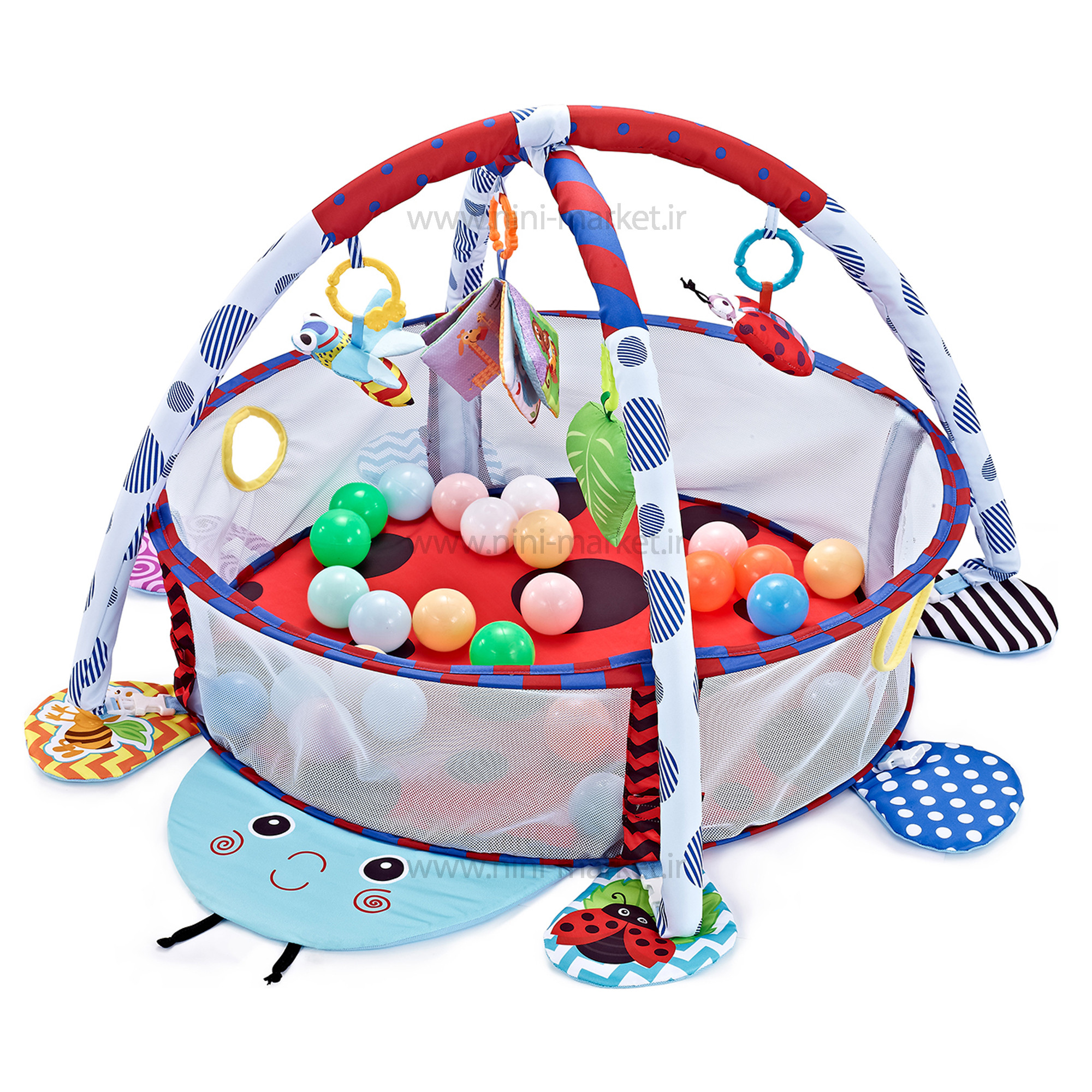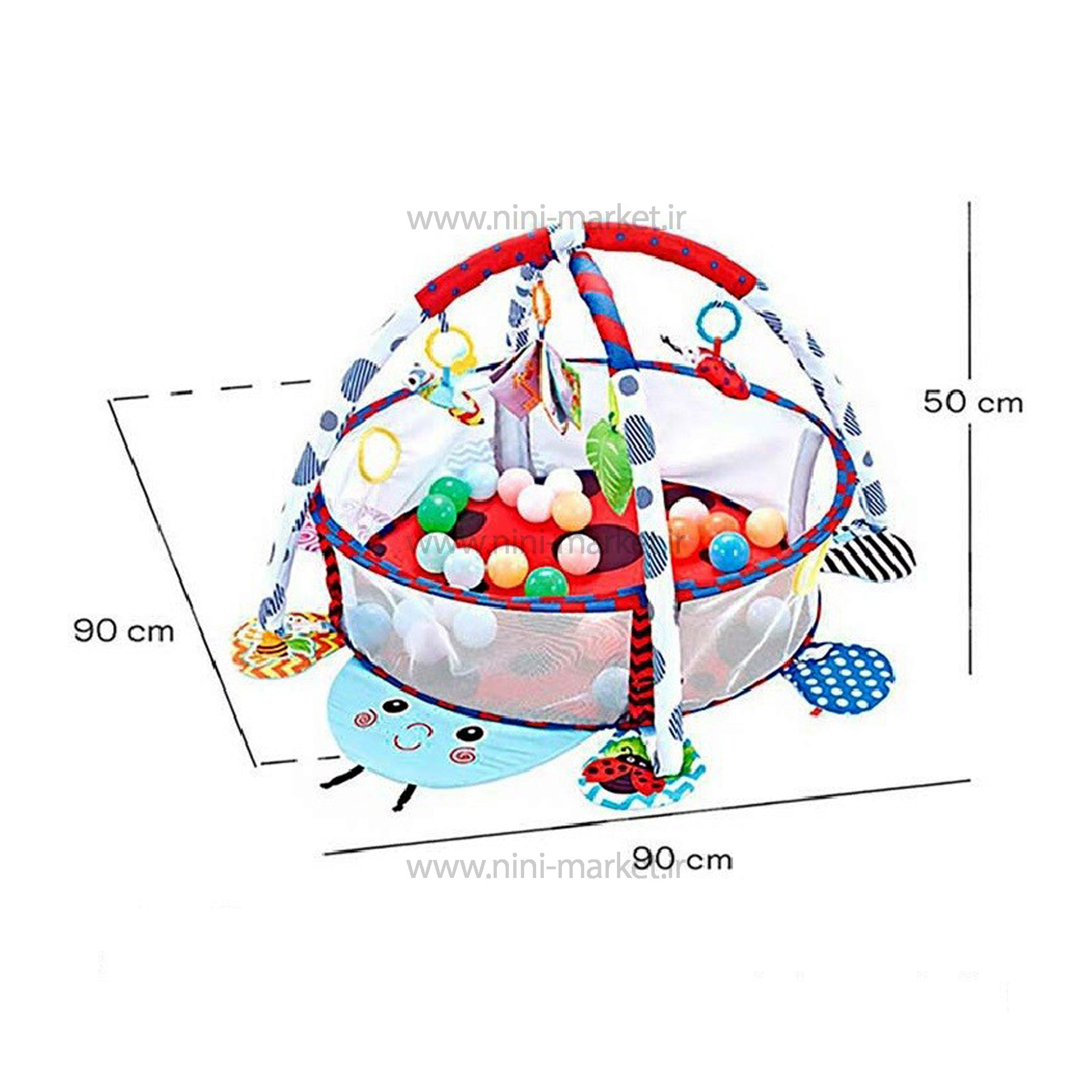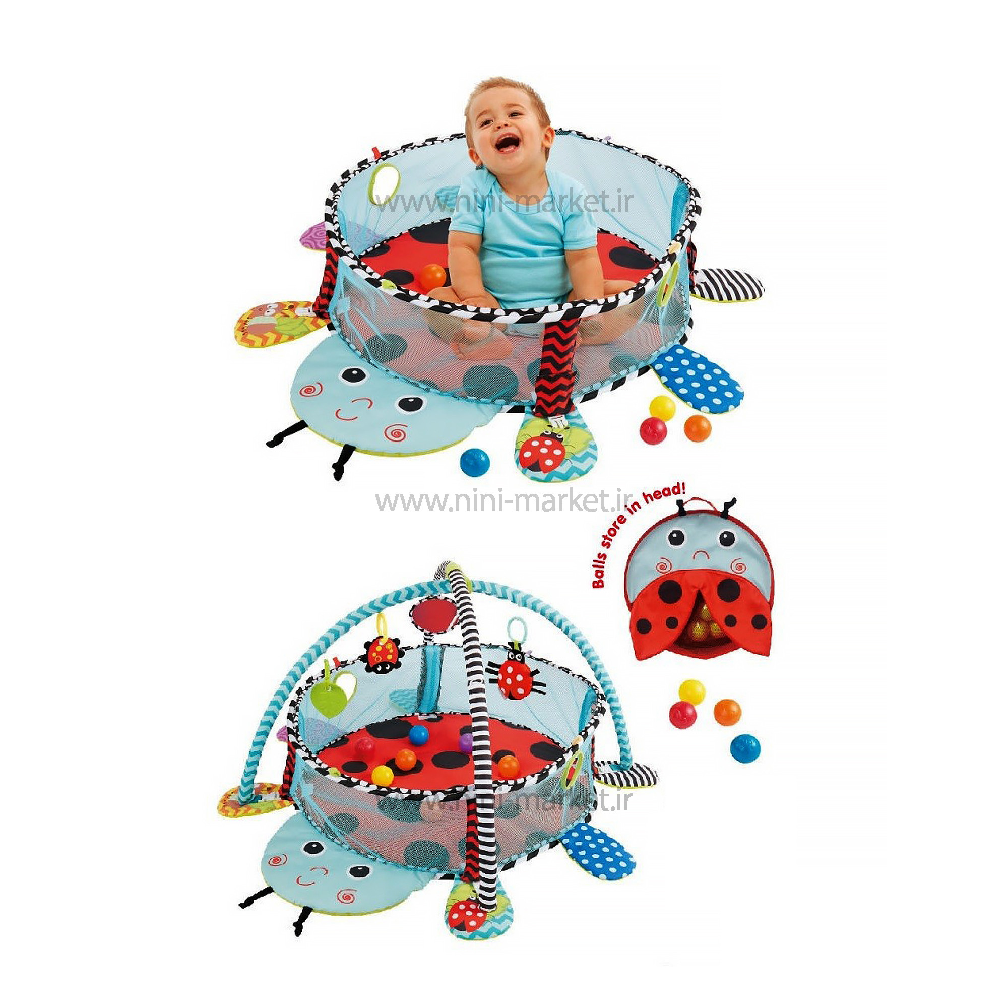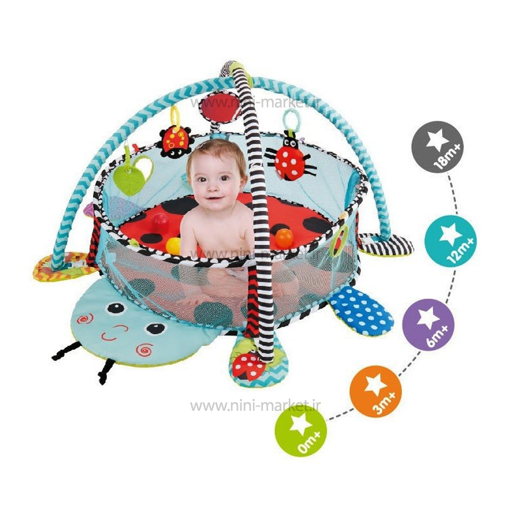 تشک بازی کیکابو طرح کفش دوزک آبی مناسب استفاده کودک عزیز شما از بدو تولد تا 36 ماهگی است. از جمله نیاز های ضروری کودکان وجود مکانی ایمن و راحت برای بازی و سرگرمی است، کودکان از بدو تولد به دلیل حس کنجکاوی بسیار بالا برای شناخت محیط اطراف خود به مکان های خطرناک در خانه رفته و یا به اشیاء مختلف دست میزنند که موجب وجود آسیب های جدی و خطر های بالقوه ای برای آنها خواهد شد. امروزه به دلیل وجود مشغله های فراوان، والدین عزیز نیز امکان حضور دائم در کنار فرزندان دلبندشان را ندارند و این امر موجب نگرانی همیشگی آنها و عدم آرامش کودکان در هنگام تنهایی خواهد شد. یکی از راه حل های ایجاد فضای ایمن برای بازی و سرگرمی کودکان استفاده از تشک بازی کیکابو است که علاوه بر ایمنی باید ارگونومیک بوده و راحتی کودک را به طور کامل تامین کنند. طراحی این محصول کاملا ارگونومیک بوده و متناسب با اندام کودکان است همچنین مواد اولیه به کار رفته در آن با کیفیت بوده و سازگار با سلامت میباشند. نوار اسباب بازی تعبیه شده بر روی تشک بازی علاوه بر سرگرمی کودک عزیز شما موجب افزایش مهارت های شناختی او نیز خواهد شد، همچنین این نوار قابل جدا شدن است. برای سرگرمی بیشتر کوچولویشما 30 توپ رنگی همراه تشک بازی قرار دارد. تمام عناصر سرگرم کننده در این محصول برای تحریک و رشد مهارت های حرکتی و شناختی طراحی و به کار رفته اند. سبد لوازم تعبیه شده در کنار تشک بازی امکان قرار دادن اسباب بازی های کودک را برای شما والدین گرامی فراهم میکند.این تشک به گونهای طراحی شده است که امکان سرگرمی کودک در سه حالت دراز کشیده به پشت و رو به شکم و در حالت نشسته را فراهم میکند. دیواره های توری به کار رفته در این محصول علاوه بر محافظت از کودک در هنگام بازی امکان دید کامل نسبت به کودک را برای شما والدین عزیز فراهم کرده همچنین موجب جریان و تهویه هوا خواهد شد.در دیواره ی تشک بازی سوراخی تعبیه شده است که کودک می تواند از طریق آن توپ ها را داخل تشک بازی بیاندازد.