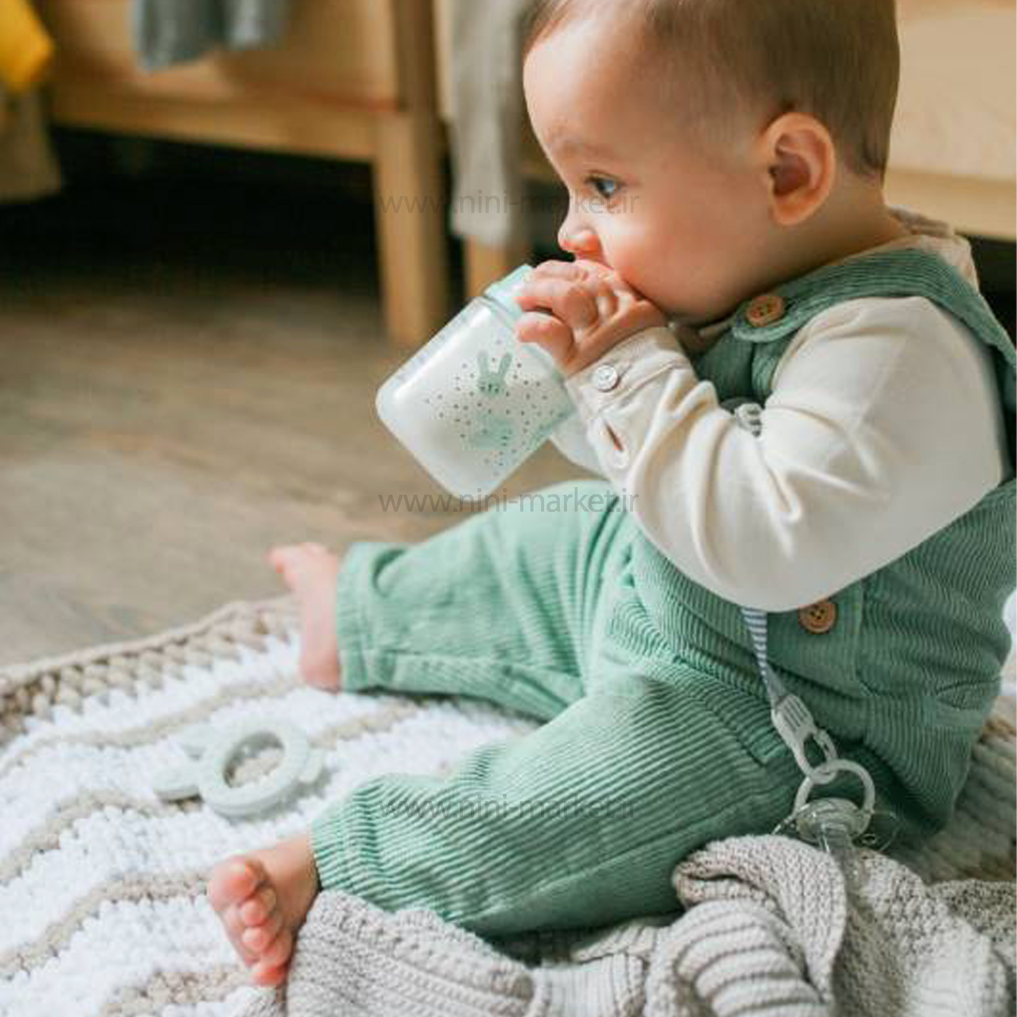 شيشه شير 150 ميل استيکر خرگوش رنگ طوسی سواوینکس Suavinex، محصولی با کیفیت، ساخت کشور اسپانیا می باشد. این شیشه شیر از سری شیر خوری های دهانه عریض می باشند که سبب می شود حباب و هواهای اضافی که موقع تنفس کودک وارد شیشه شده اند، وارد معده اش نشود. در نتیجه از دل درد و کولیک جلوگیری می کند. همچنین دهانه ی عریض شیشه باعث شستشوی راحت تر آن می شود. این شيشه شير 150 ميل استيکر خرگوش رنگ طوسی سواوینکس Suavinex برای رفع نیازهای تغذیه همه نوزادان طراحی شده است. سرپستانک سیلیکونی طبی گرد بسیار انعطاف پذیر است و شکل خود را حفظ می کند و رنگ و بو را تغییر نمی دهد. دریچه های ضد کولیک از تجمع هوا و بلعیدن آن در حین تغذیه جلوگیری می کند. طراحی ارگونومیک به شما کمک میکند تا بهتر بتوانید به روشی راحت و طبیعی تغذیه کنید. از مواد غذایی با کیفیت بالا ساخته شده است. این توسط انجمن دندانپزشکی کودکان اسپانیا آزمایش شده است. رنگ های استفاده شده طبیعی و غیر سمی هستند. شیشه شیر سواوینکس طراحی زیبایی دارد و دارای درجه بندی و درپوش می باشد. این شیشه شیر فاقد ماده مضر بیسفنول آ (که می تواند موجب مشکلات هورمونی کودکان بشود) می باشد. شیشه شیر سوآوینکس دارای یک درپوش برای جلوگیری از آلوده شدن سرشیشه است. در روی درپوش شیشه شیر ۶ سوراخ برای جریان داشتن هوا به جهت جلوگیری از بو گرفتن شیشه شیر تعبیه شده است. همچنین شیشه شیر suavinex دارای یک سرپوش پلاستیکی هستند، برای زمانی که نمیخواهید از شیشه استفاده کنید. سرپوش را روی شیشه میگذارید و سری آن را میبندید تا مانع ریختن شیر شود. درب پوش شیشه شیر کامل روی شیشه بسته می شود و از آلوده و کثیف شدن سرشیشه پیشگیری می کند. سری شیشه گرد و جنس آن سیلیکونی و جنس شیشه شیر پلی پروپیلن است. شیشه شیر قابل شستشو با دست و همچنین با ماشین ظرفشویی می باشد.