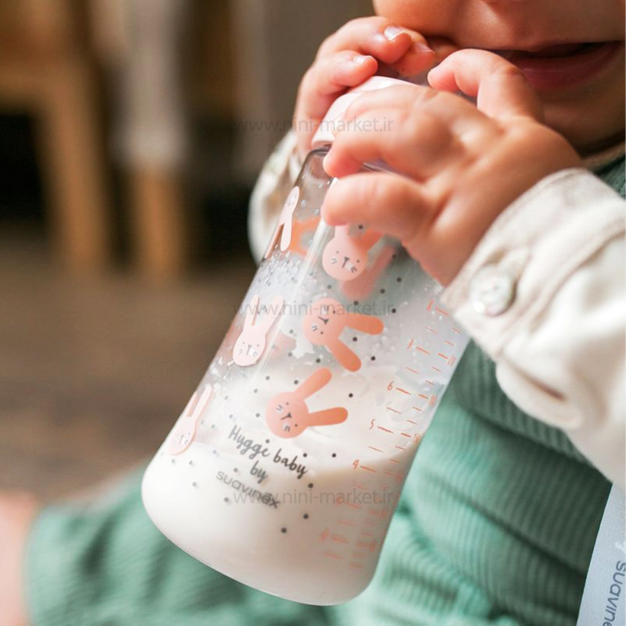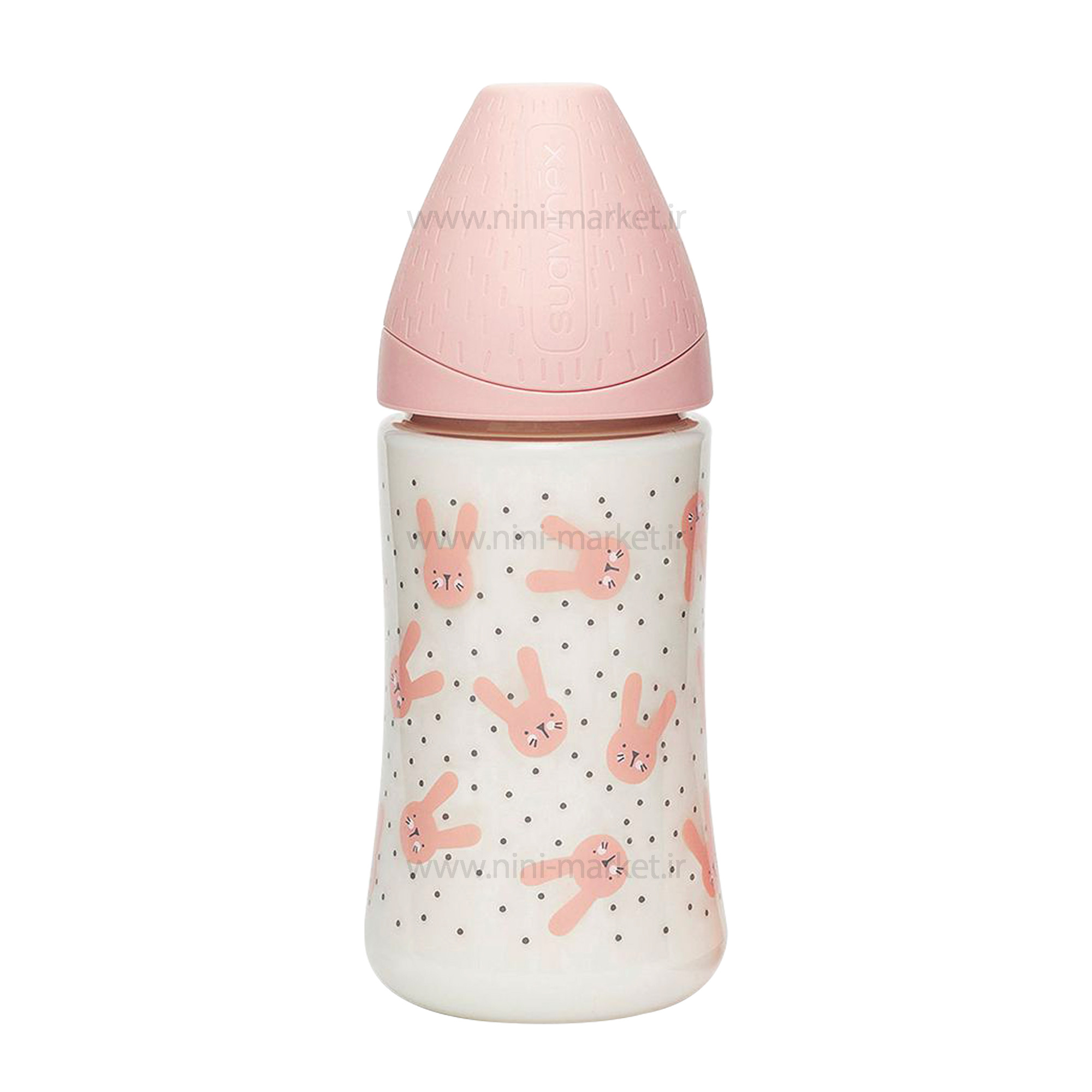 شيشه شير 270 ميل استيکر خرگوش رنگ صورتي سواوینکس Suavinex