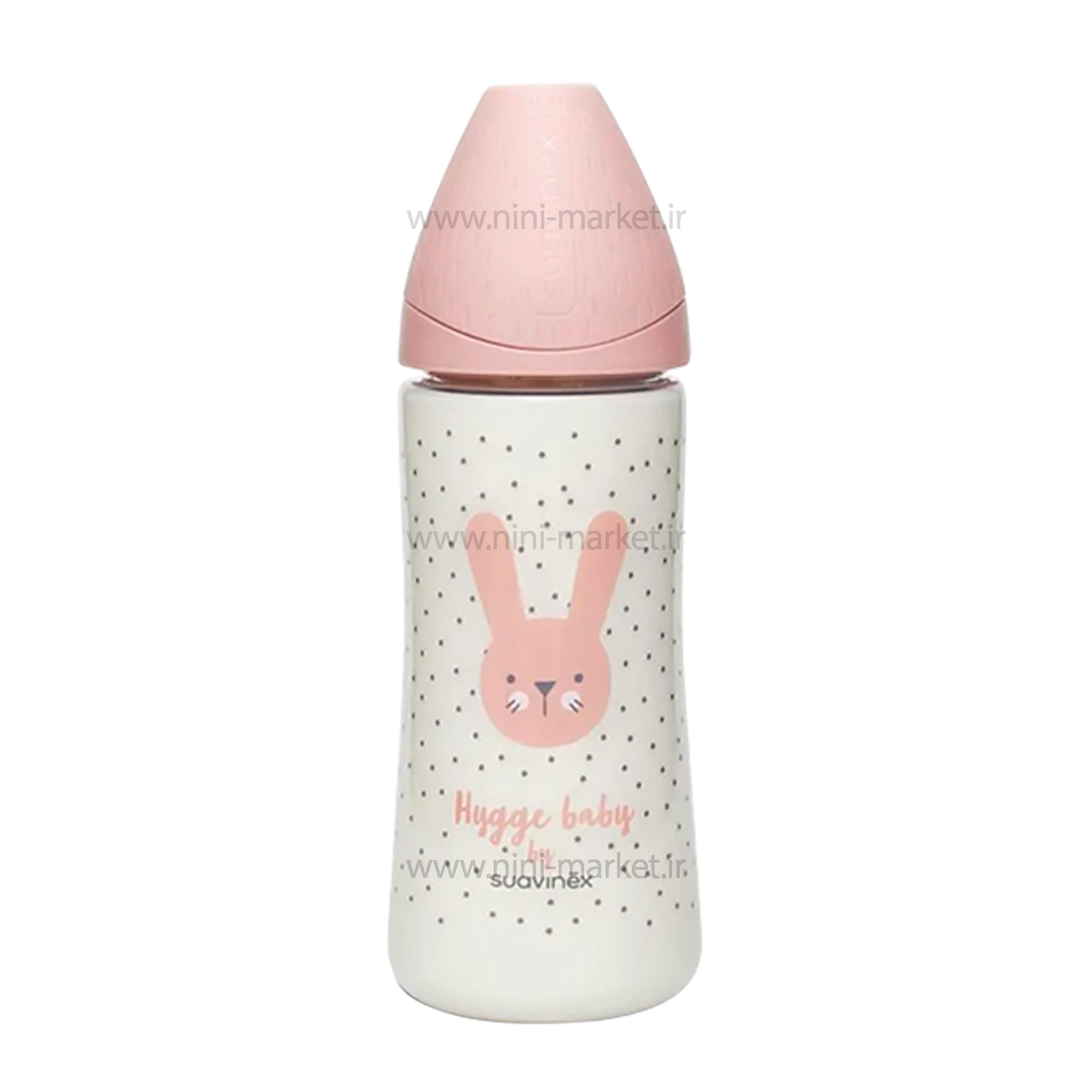 شيشه شير 360 ميل استيکر خرگوش رنگ صورتی سواوینکس Suavinex