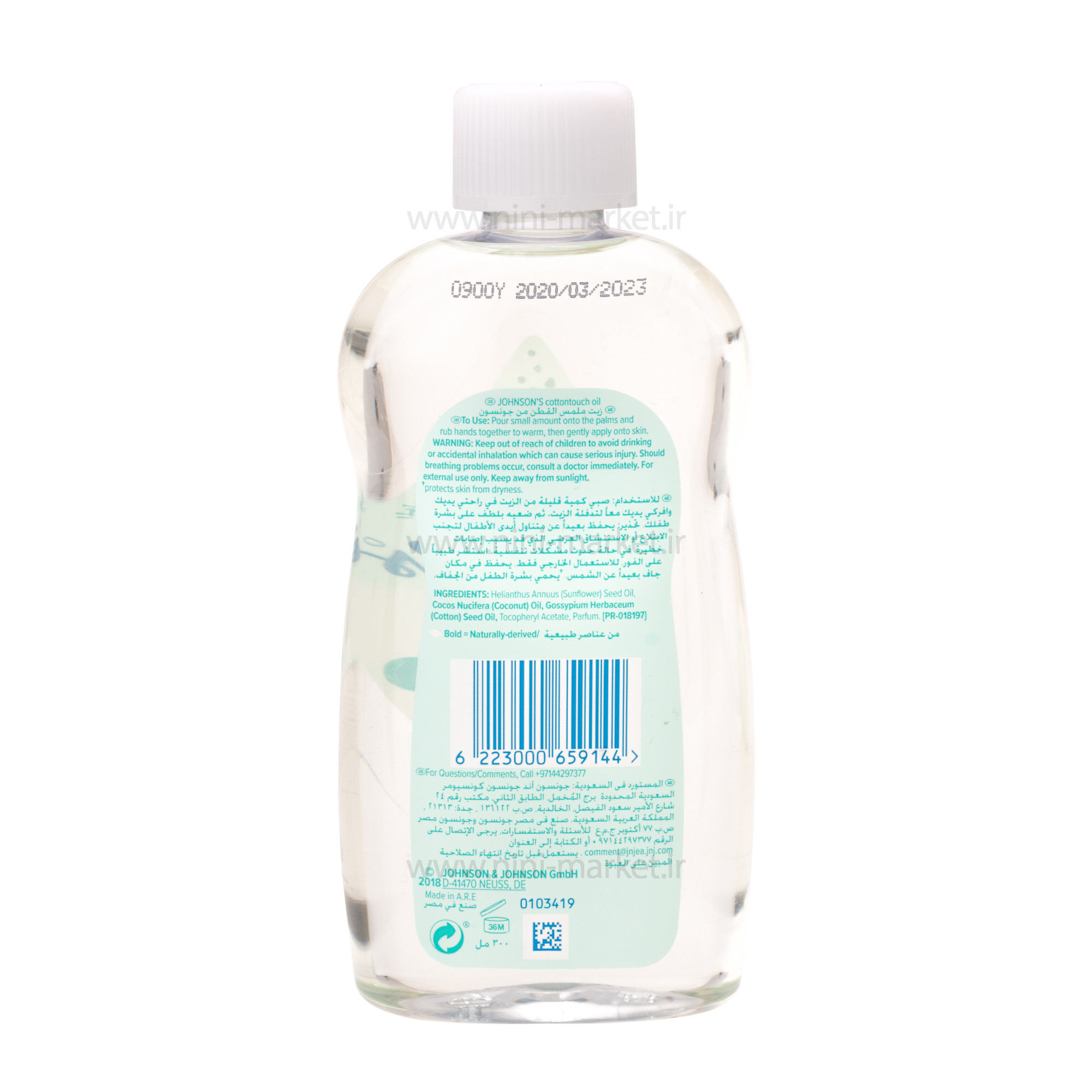 روغن 300 میل حاوی پنبه دانه جانسون Johnson مرطوب کننده ، نرم کننده بدون رنگ و چربی مضردارای لینولئیک برای تقویت و رشد موکاهش التهابات پوستی مرطوب کننده و آرامش بخش می کند. این روغن بچه جانسون نرم کننده و مرطوب کننده پوست است. روغن بدن جانسون برای ماساژ بدن کودکان و بزرگسالان مناسب است. روغن بدن جانسون دارای لینولئیک برای تقویت و رشد مو می باشد. حاوی ویتامین E، روغن پنبه دانه و گلیسیرین و پلی سوربات است. به کاهش التهابات پوستی کمک میکند و باعث پیشگیری از انواع حساسیت ها می شود. این روغن بدن یک مرطوب کنندهی قوی است و به پوست کمک می کند رطوبت خود را حفظ کند. روغن بدن Jonson فاقد رنگ و چربی های مضر می باشد. روغن بچه جانسون برای برطرف کردن خشکی های نواحی پوشک کودک بسیار موثر است. چرا روغن بدن؟ متخصصان معتقدند ماساژ بدن کودکان تاثیر بسیار مثبتی بر روند رشد و کیفیت خواب کودکان دارد. روغن بدن باعث شادابی پوست و حس آرامش در کودک می شود.