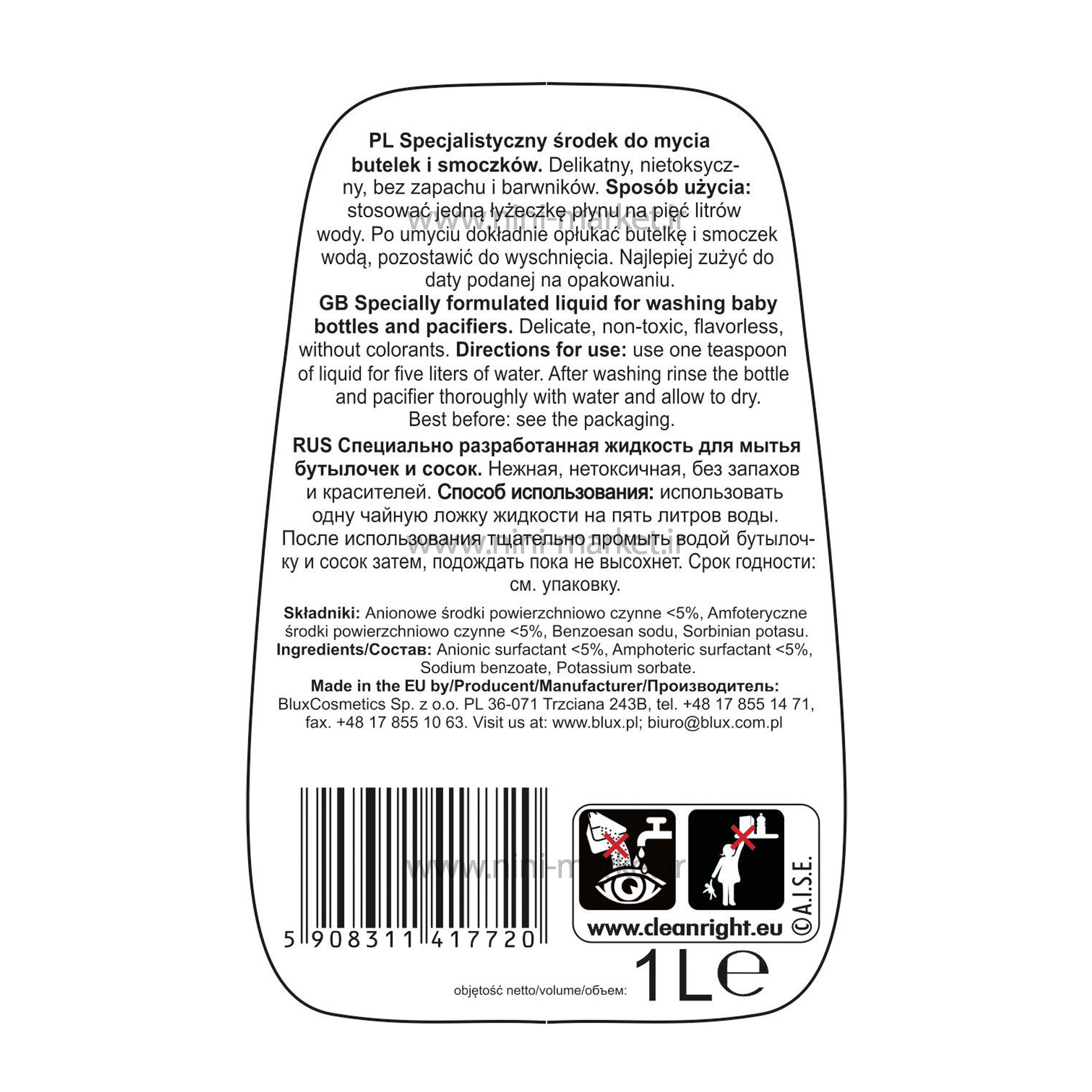تمیز و ضدعفونی بودن ظروف و اسباب بازی های کودک از اهمیت ویژه ای برخوردار است. بدن کودکان به دلیل سیستم ایمنی ضعیفی که دارند خیلی زود به ویروس ها و میکروب های منتقل شده از طریق وسایل و ظرف و ظروف عکس العمل نشان داده و مریض می شوند. برای جلوگیری از بروز بیماری باید از محصولی برای استریل و ضد عفونی کردن ظروف و اسباب بازی های کودک استفاده شود که بدن کودک را نیز دچار عارضه نکند. نمایندگی تخصصی شستشوی شیشه شیر و سرپستانک. ظریف، غیر سمی، بی بو و بدون رنگ. مایع شستوشوی بطریها و سرپستانکها بهویژه برای تمیز کردن سرپستانکها و بطریهای نوزاد ساخته شده است. این محصول در پاکسازی باقی مانده شیر و آبمیوه خشک شده بسیار موثر است. مایع تمیز کننده پستانک Blux فقط از مواد شوینده ملایم ساخته شده است. هزاران مشتری از مایع استریل Blux استفاده می کنند، آنها به برند Blux وفادار هستند، که ما از شما تشکر می کنیم.