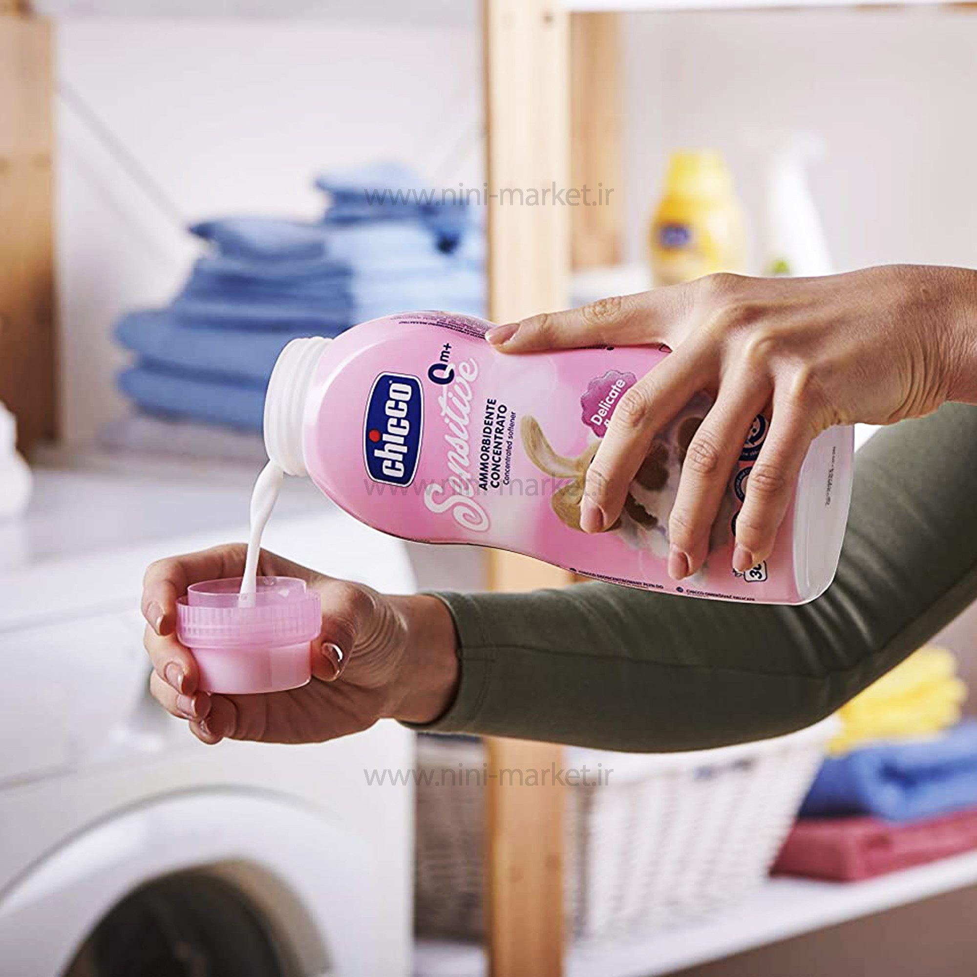 مایع نرم کننده لباس چیکو Chicco مدل Delicate Flower حاوی ترکیباتی است که در عین مراقبت از پوست حساس نوزادان، پارچه لباس آن ها را به خوبی نرم و لطیف خواهد کرد. نرم کننده لباس کودک چیکو مدل Delicate Flower حجم 750 میلی لیتر فاقد نیکل یا دیگر مواد شیمیایی مضر برای پوست کودکان است. از آنجا که لباس بیشترین تماس را با بدن کودک دارد و پوست آن­ها بسیار لطیف و حساس می­باشد. پس باید از مواد شوینده و نرم کننده­ای برای شستشوی لباس های کودکشان استفاده کنند. که علاوه بر تمیز کردن، لطافت و عطر خاصی به لباس آنان ببخشد. شستشوی لباس با مواد شوینده معمولی باعث بروز خارش و التهاب در پوست کودکان می­شود. اما استفاده از مایع نرم کننده لباس چیکو به علت نداشتن مواد شیمایی به هیچ وجه حساسیت پوستی ایجاد نمیکند و والدین با خیال آسوده می­توانند لباس های نوزادشان را بشویند. این مایع نرم کننده از موادی تولید شدهِ که هرگز آسیبی به بافت لباس کودک وارد نمیکند و در هنگام استفاده از آن الکتریسیته ساکن ایجاد نمی­کند. نرم کننده لباس چیکو قابلیت ضد حساسیت دارد. و با توجه به قابلیت هیپو آلرژیک خود هیچ گونه حساسیت و آلرژی برای کودک ایجاد نمی کند. نرم کننده لباس چیکو مخصوص شستشوی لباس های کودکان می باشد.و آلودگی های ناشی از مواد مختلف را از روی لباس ها از بین می برد و موجب تمیزی کامل آن ها می شود. همچنین از ایجاد الکتریسیته ساکن در آن ها جلوگیری می کند و به اتوکشی بهتر و راحت تر البسه کمک می نماید. نظافت لباس های کودک و نوزادان از حساسیت ویژه ای برخوردار است چرا که نوزادان پوست ظریفی داشته و از نظر سیستم ایمنی نیز بسیار ضعیف می باشند و بیشتر مورد حساسیت و آلودگی قرار می گیرند. نرم کننده لباس چیکو لباس کودک شما را نرم و تمیز کرده و هیچ حساسیتی برای او ایجاد نمی کند. نرم کننده لباس چیکو ضد حساسیت بوده هیچ آسیبی به رنگ و الیاف لباس نوزاد یا خانواده وارد نمی کند. باعث لطافت لباس ها می شود و بوی بد و لکه های سخت را پاک می کند. فرمول غلیظ آن اجازه می دهد حداکثر دمای استاندارد 30 درجه را بدون آسیب به رنگ و الیاف داشته باشید. مایع چیکو بدون تحریک پوست لطیف و حساس نوزاد شما باعث نرمی و خوشبو شدن لباس هایش می شود. دارای سه رایحه لطیف گل ها، لمس لطیف و عطر ظریف تالک می باشد.شما میتوانید مایع را هم با دست و هم در ماشین لباس شویی استفاده کنید.