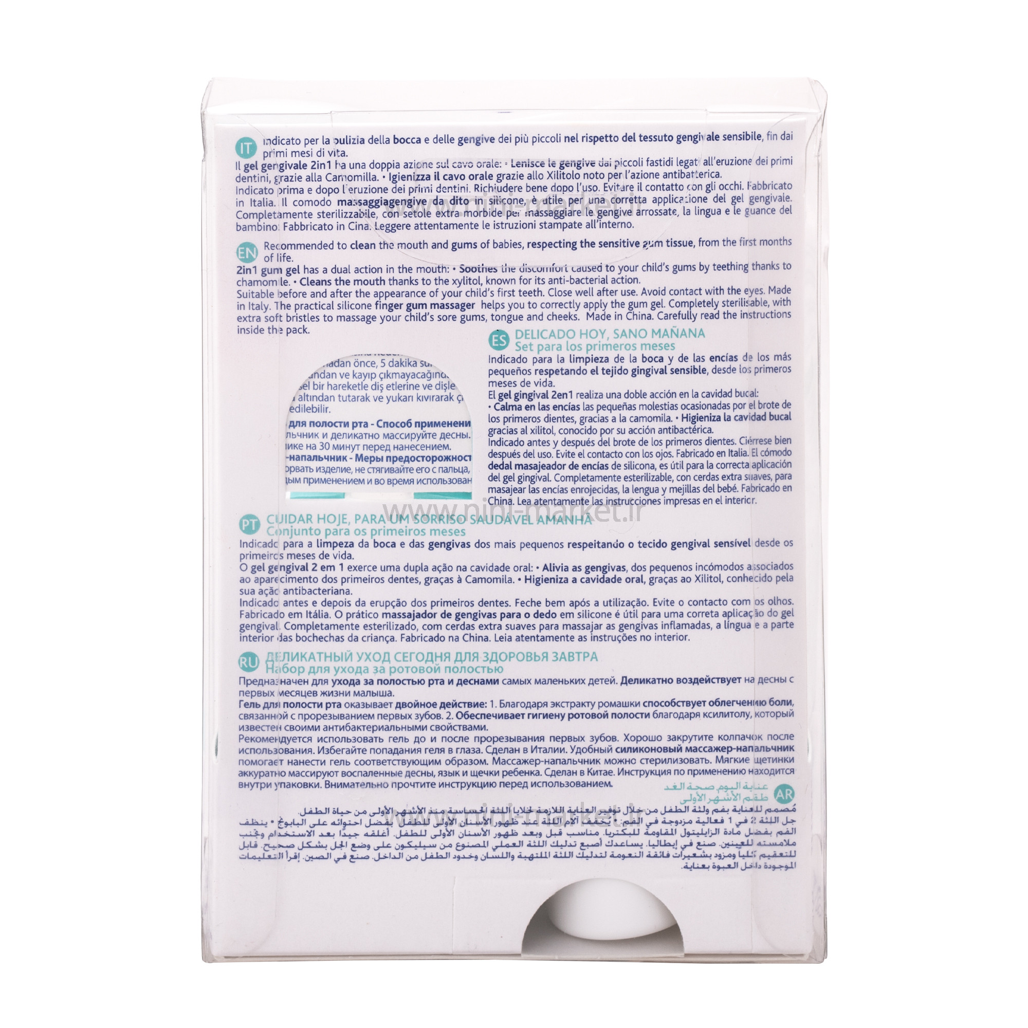 مسواک انگشتي و ژل لثه نوزاد چيکو chicco ، یک ست با کیفیت و کاربردی برای زمان دندان در آوردن کودک و بعد از آن می باشد. این محصول باعث تسکین خارش لثه کودک می شود و همچنین مناسب برای مراقبت از دندان و بهداشت دهان می باشد. مسواک انگشتي و ژل لثه نوزاد چيکو chicco ، ساخت کشور ایتالیا می باشد. این محصول از چهار ماهگی به بعد و در زمانی که کودک شما شروع به دندان در آوردن می کند، بسیار کاربردی خواهد بود. چرا که در این دوران کودک درد و خارش زیادی را تجربه خواهد کرد. ژل لثه چیکو خاصیت تسکین دهندگی دارد و می تواند تحمل این دوران را برای کودک آسان تر کند. ژل لثه مناسب ماساژ لثه و دندان های کودک است و می توان ۴ الی ۶ مرتبه در روز از آن استفاده کرد. ژل لثه کیفیت ساخت بالایی دارد و فاقد بو و مواد شیمیایی و مضر می باشد و می توان با خیال راحت از آن استفاده کرد. ژل چیکو خارش لثه ها را بر طرف می کند و دارای رایحه بابونه است. این محثول قابل استفاده به عنوان خمیر دندان می باشد. ست ژل چیکو دارای یک مسواک انگشتی با جنس سیلیکونی است که به وسیله آن می توانید ژل را بر روی لثه های کودک ماساژ دهید و خارش آن را تسکین دهید.این ژل حتی پس از دندان در اوردن فرزند دلبد شما نیز کابرد خواهد داشت. شما می توانید از آن به عنوان خمیر دندان برای کودک تان استفاده کنید، تا فرزندتان دندان های سالمی داشته باشد. ژل چیکو بدون طعم است و در صورت خورده شدن هیچ آسیب و مشکلی برای کودک ایجاد نمی کند.