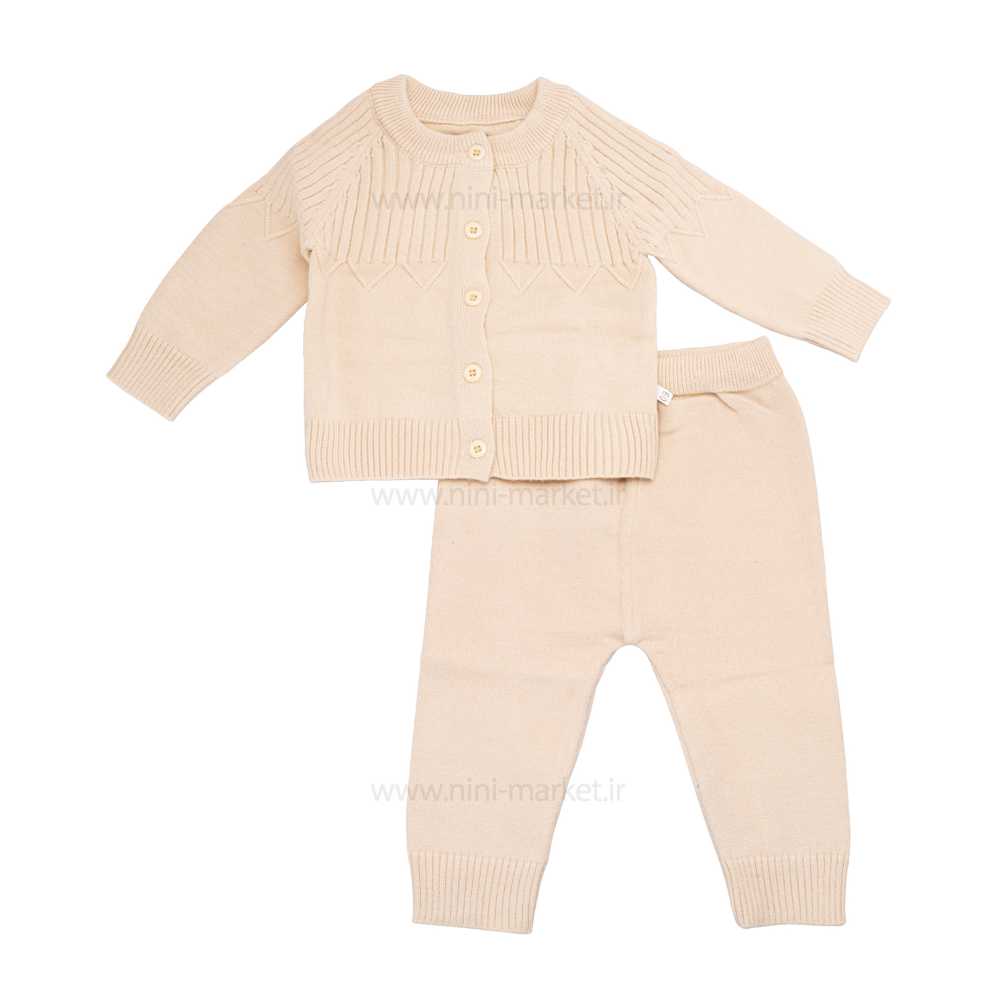ژاکت شلوار بافت رنگ کرم برند خارجی