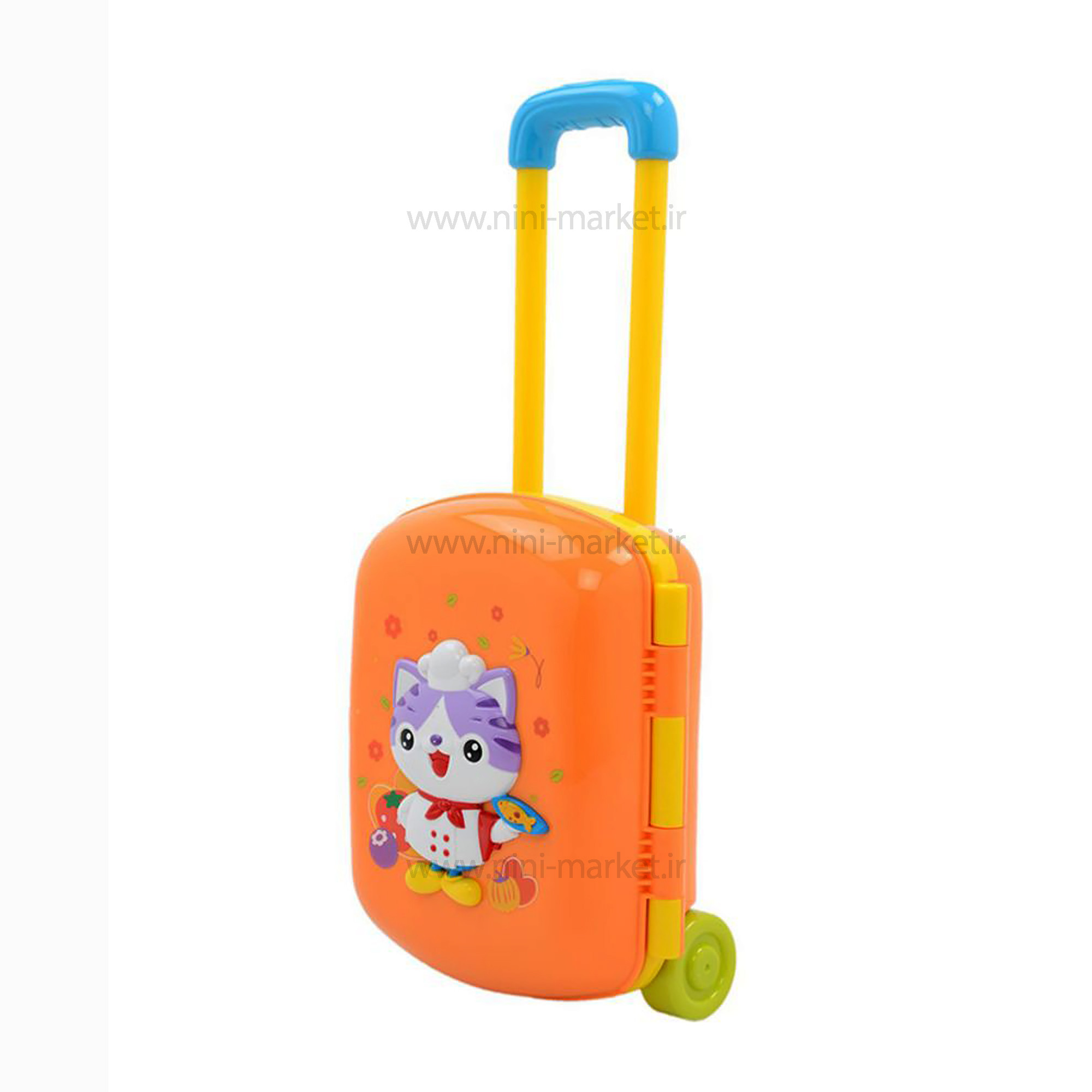 • مزیت : رنگ غیر شیمیایی، بدنه نشکن - تولید شده از مواد اولیه درجه یک – موثر بر بهبود مهارت حرکتی دست و انگشتان کودک – دارای رنگ‌های شاد و بسیار جذاب - قابلیت حرکت - قابلیت پخش صدا و موزیک - دارای چراغ LED - طراحی برجسته گربه سرآشپز بر روی بدنه چمدان - استفاده از مواد اولیه کاملا استاندارد در ساخت استحکام فوق العاده بدنه چمدان - دارای قطعات با رنگ های بسیار شفاف و زیبا - قابل حمل - با کیفیت و نشکن – آشنایی با لوازم آشپزخانه و نحوه کار کردن با آن ها - موثر بر بهبود مهارت حرکتی دست و انگشتان کودک - کمک به ارتقاء مهارت تشخیص بافت اشیاء با حس لامسه در سنین پایین - تقویت هماهنگی بین چشم و دست کودک از طریق گرفتن و حرکت دادن این اسباب بازی - تقویت مهارت سناریو سازی ذهنی، خیالپردازی و داستان سازی در بازی با این اسباب بازی - کمک به هوش هیجانی و بین فردی در بازی مشترک با سایر همسالان - تقویت هوش منطقی و ریاضی با درک روابط بین اجزاء شامل تمایز رنگ اجزاء