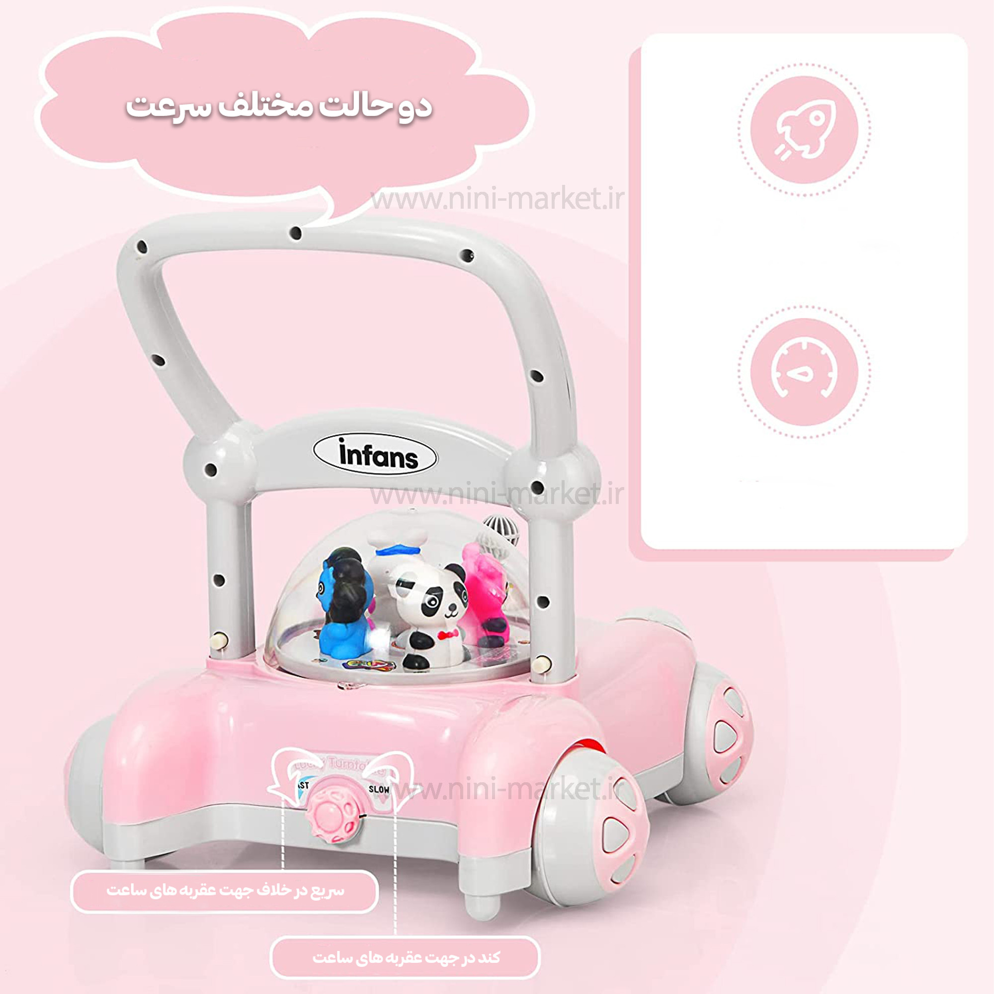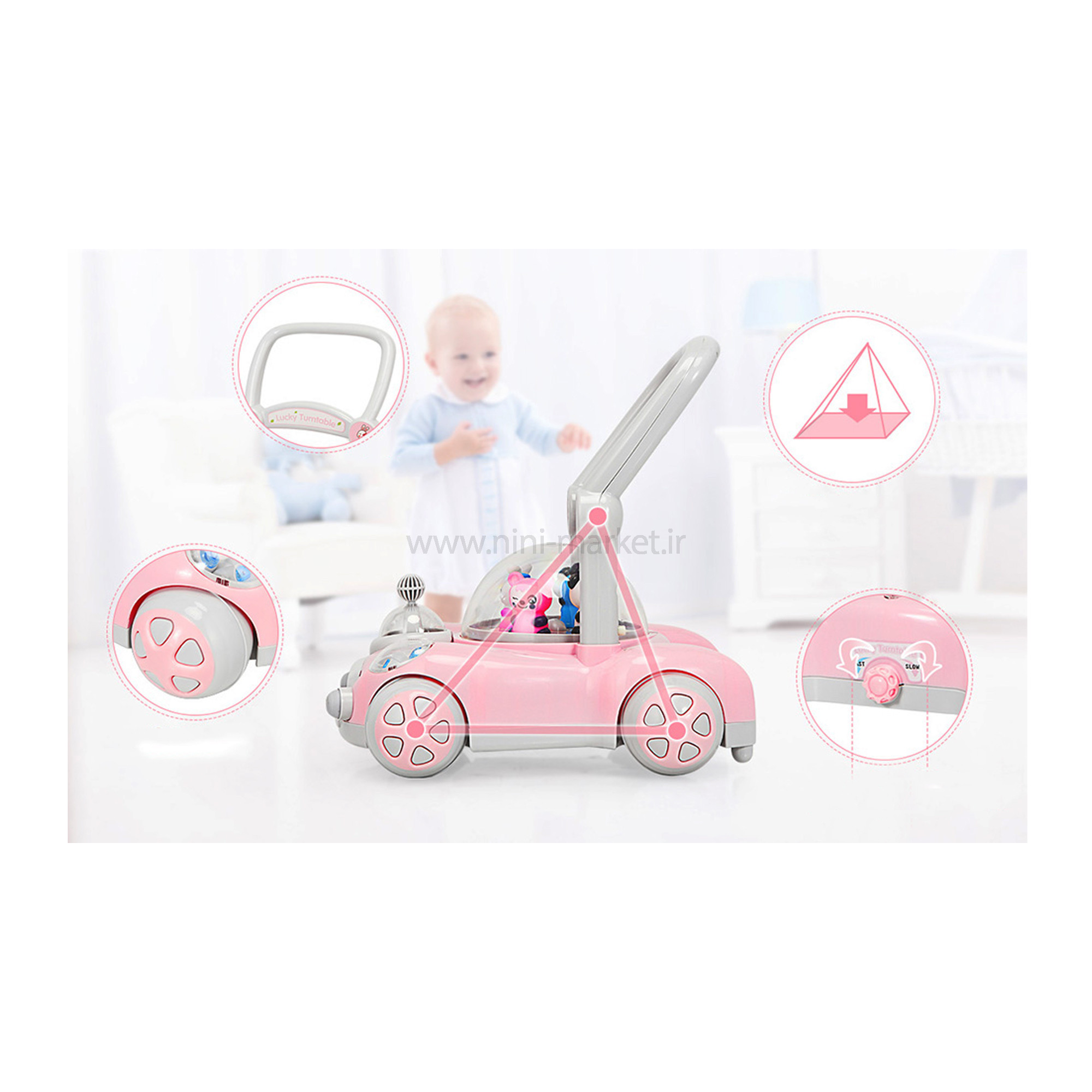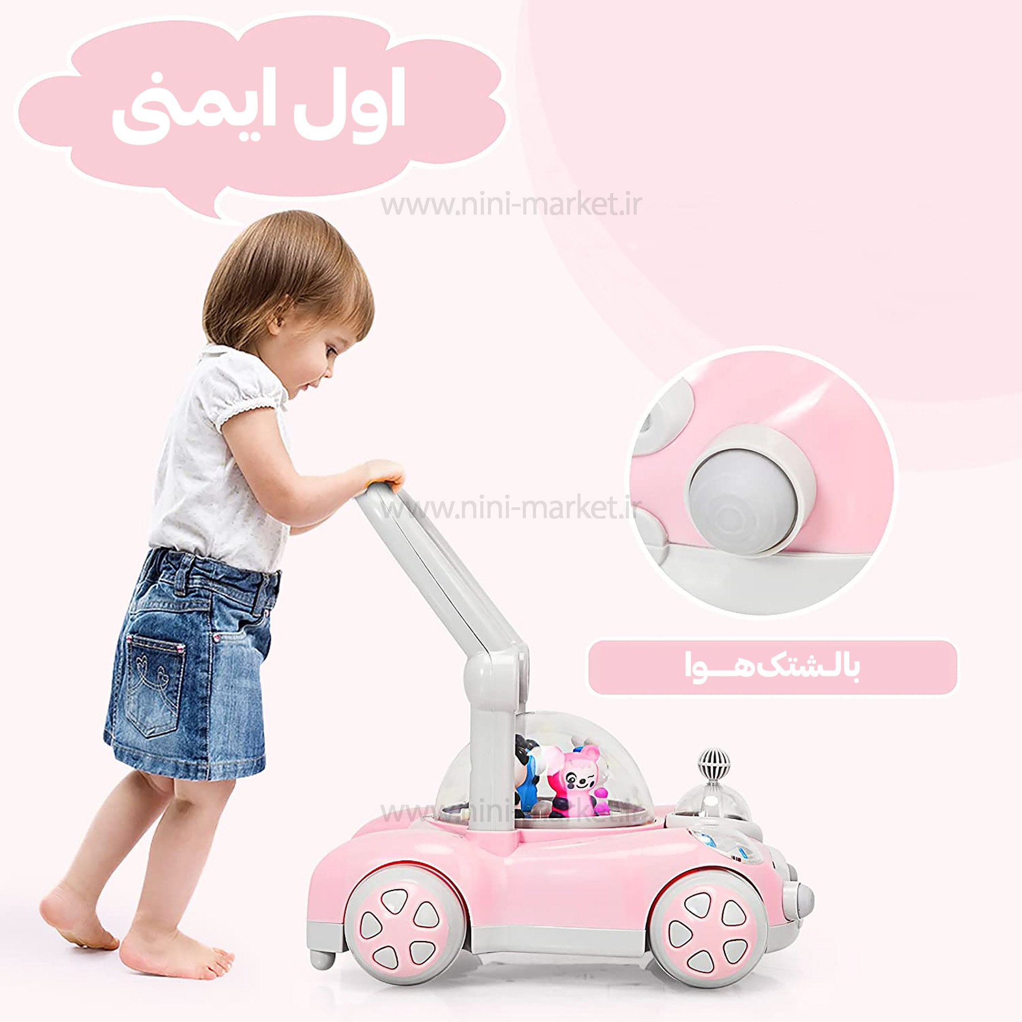 واکر ماشین حباب دار رنگ صورتي برند +ab