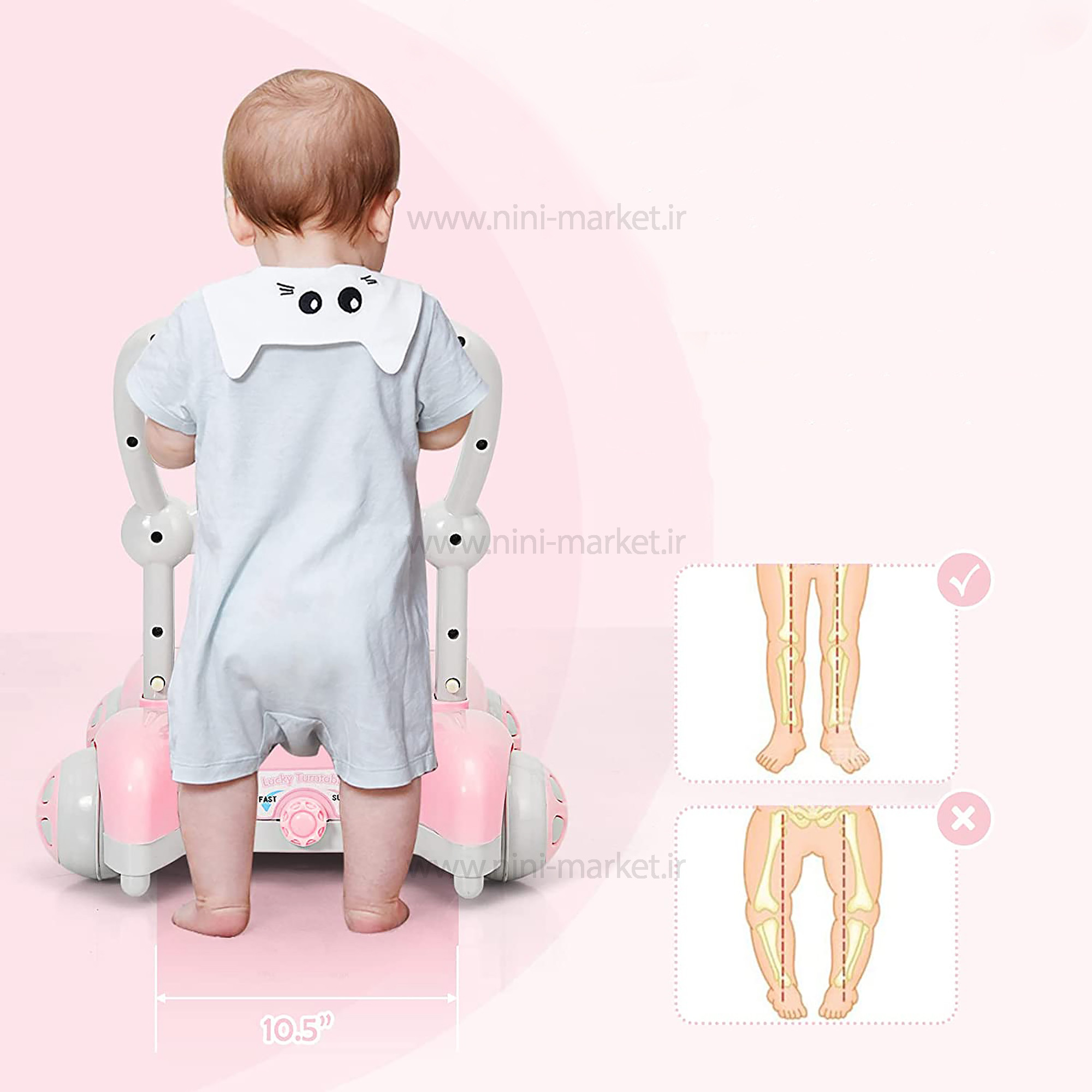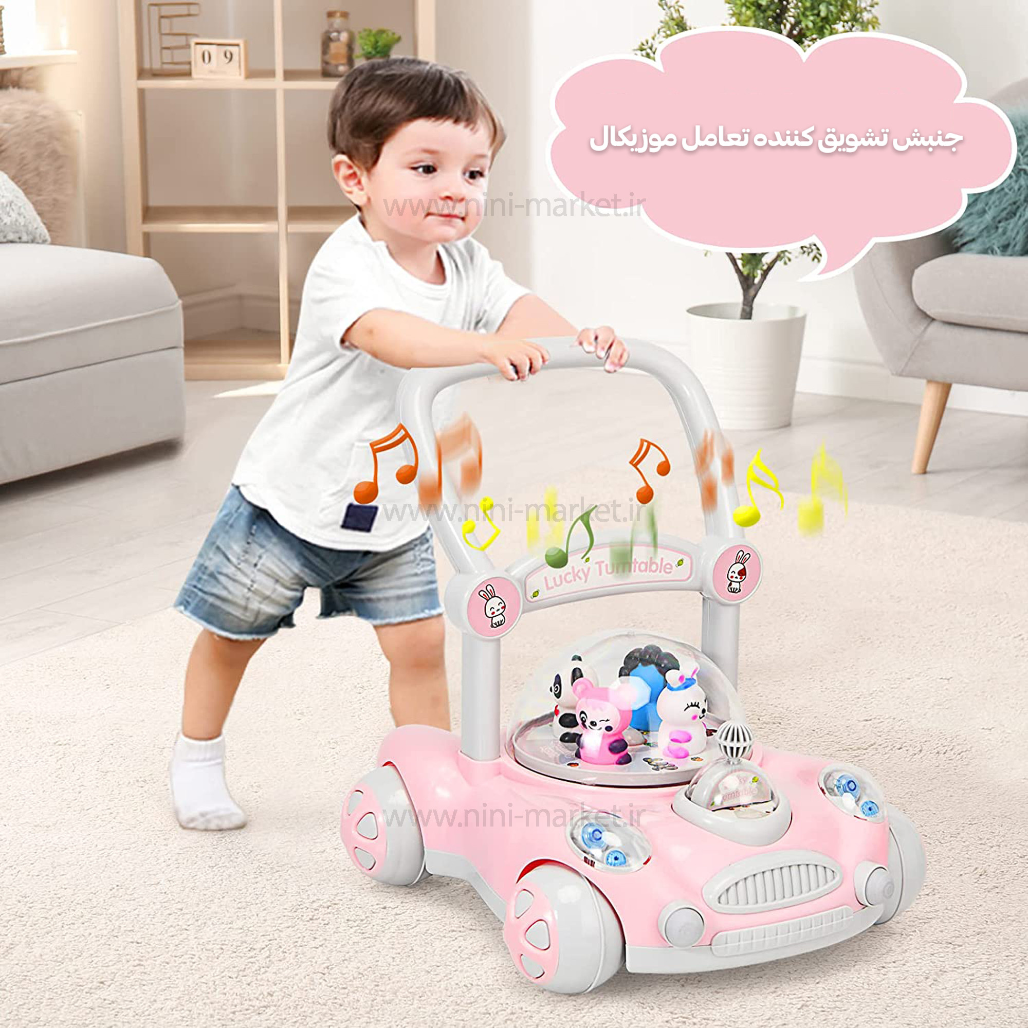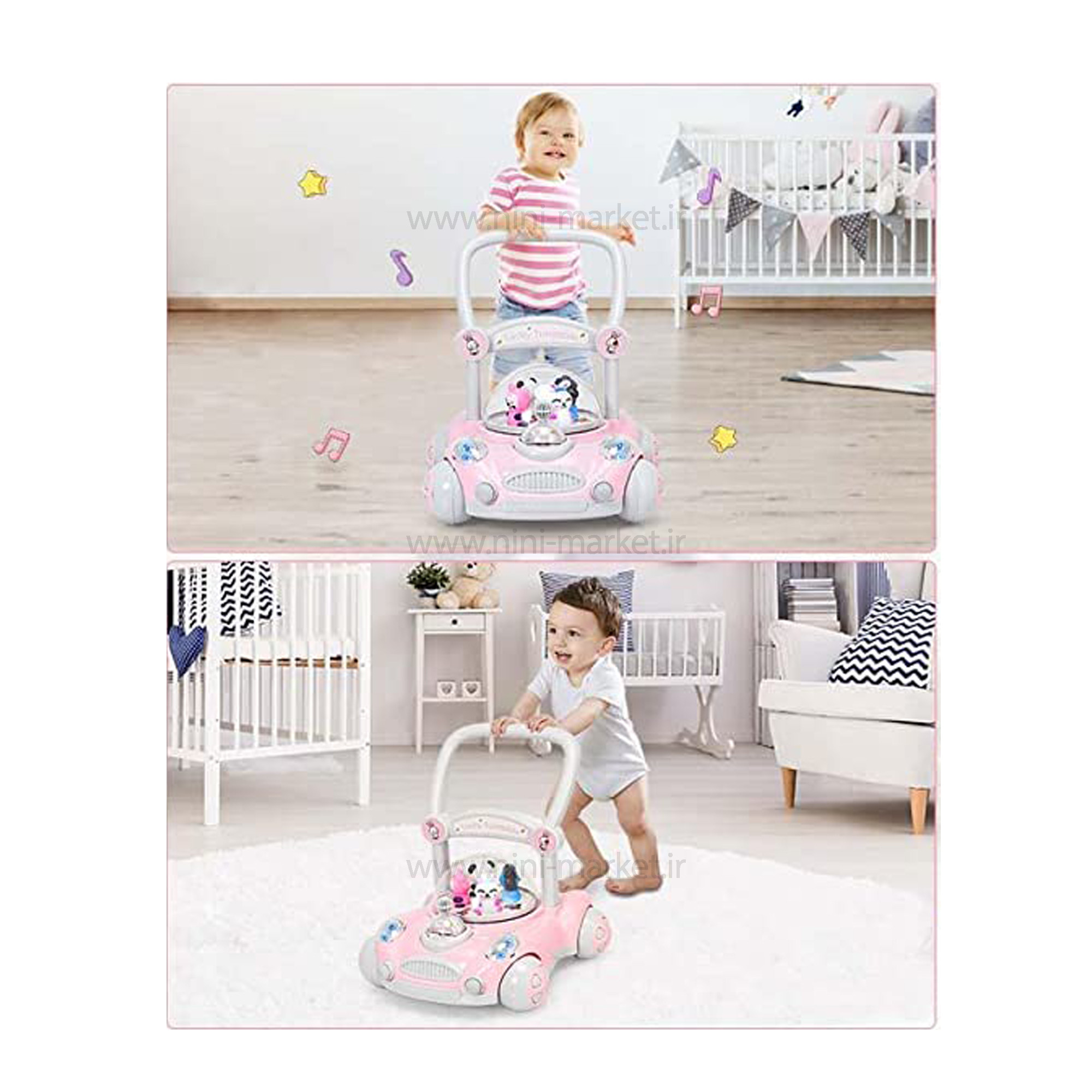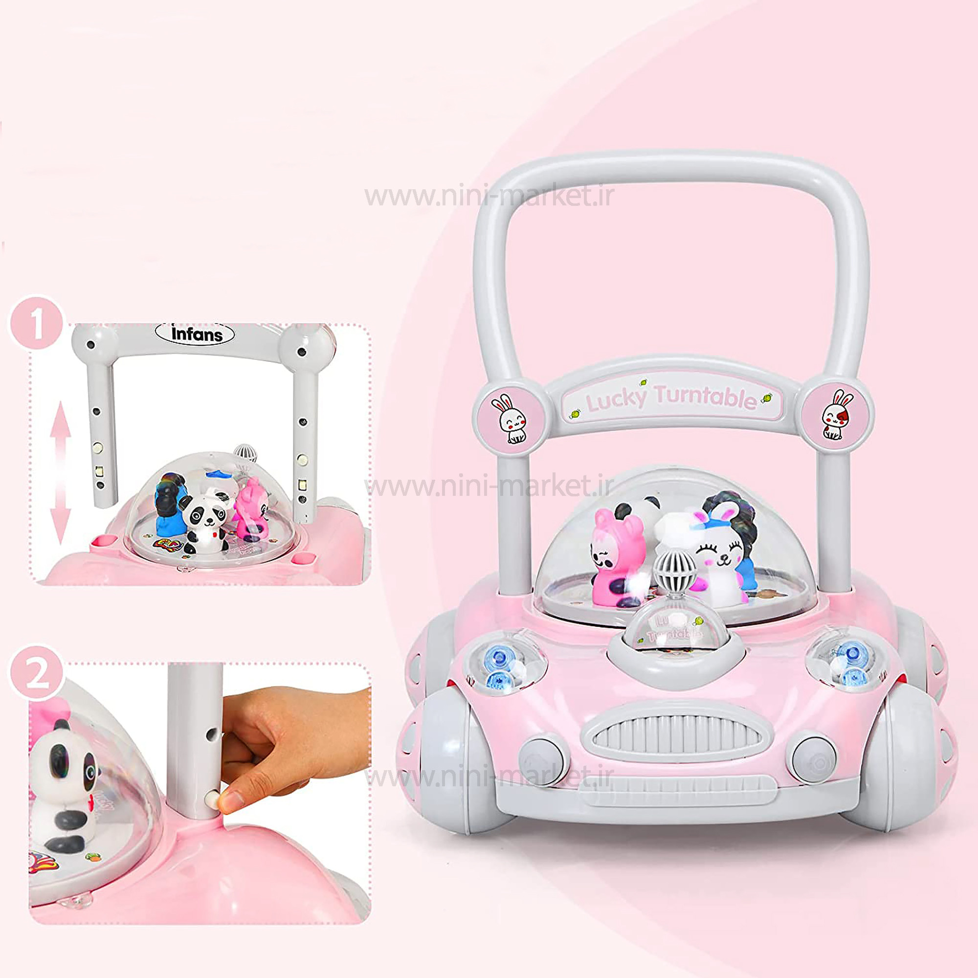واکر ماشین حباب دار رنگ صورتي برند +ab