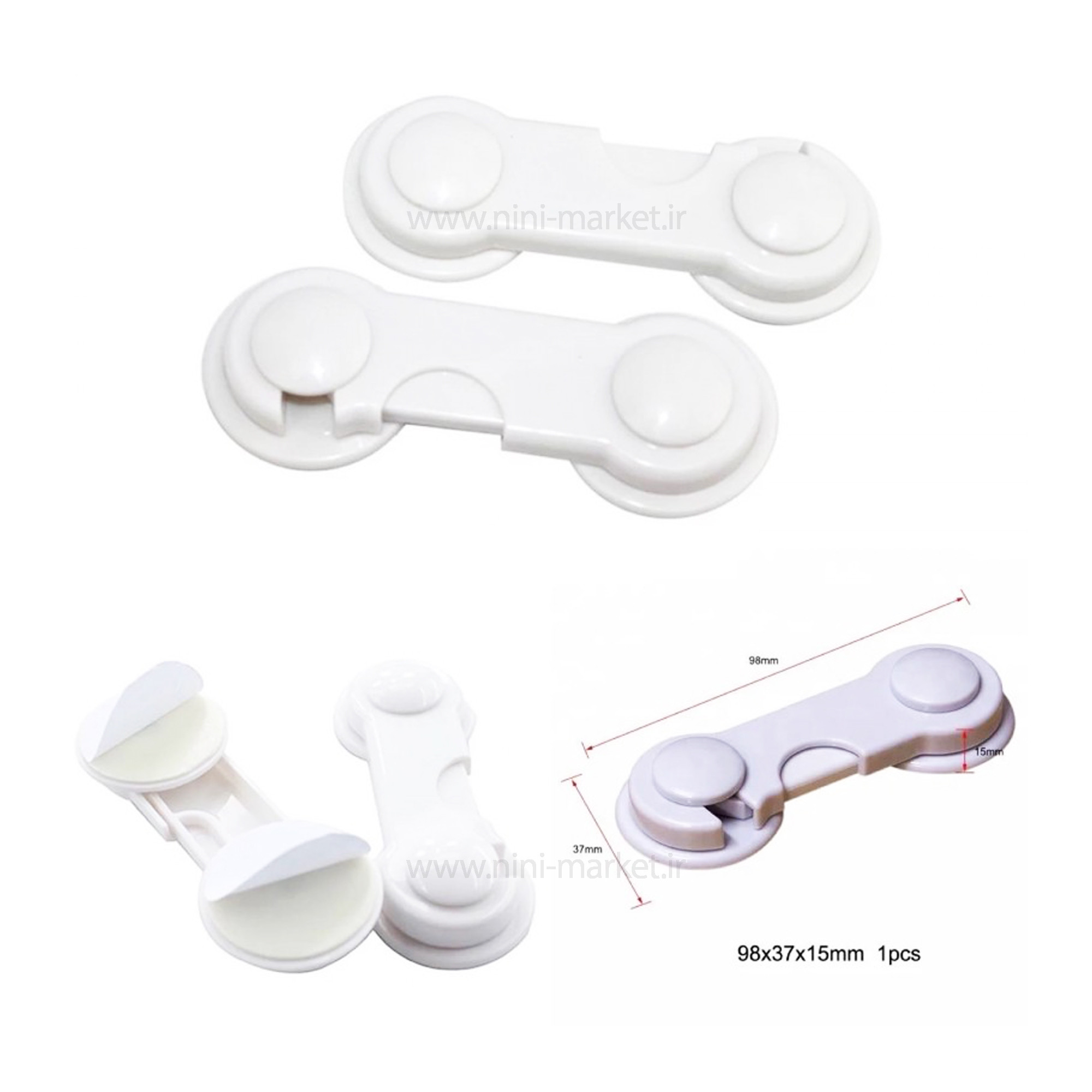 قفل چندمنظوره دکمه ای رنگ سفید نینو Ninno به راحتی بر روی در کابینت و کمد نصب می شود. تنها کافیست پوشش چسب پشت قفل ها را برداشته و بر روی محل مورد نظر نصب نمائید و در هر بسته2 عدد قفل می باشد. وقتی کودک اولین گامهای محکم خود را روی زمین میگذارد، در حال تجربه لذتی است که حاضر است در راه آن هر خطری را بپذیرد. درک و تجربهی کم کودک از خطر و آسیب دیدن، به ریسکپذیری او و البته نگرانیهای پدر و مادرش دامن میزند! به جز اینها این کودک بازیگوش میتواند سراغ کمدها و کابینتها برود و حسابی ریخت و پاش کند! حتما این نگرانی همیشه همراه شماست که هر لحظه ممکن است یک شئ سنگین از قفسههای بالاتر کمد یا کابینت روی سر یا بدن او بیفتد. قفل کردن در کمد اولین راهحل است اما در مورد کابینتها و کمدهایی که قفل ندارند چطور؟ در این مورد هم دیگر نگرانیای وجود ندارد. با نصب قفلهای مخصوص ایمنی کودک بر روی دستگیره کمد و کابینت احتمال آسیب دیدن کودک نوپای خود را به حداقل میرسانید. این مدل قفل درِ کمد و کابینت نینو قابلیت نصب بر روی انواع دستگیرهها را دارد. جنس این محصول پلاستیکی بوده و در دو بستههای دو عددی عرضه میشود. هر قفل دارای دو دکمه به همراه برچسبی است که آن را روی سطح کمد یا کابینت محکم میکند. باز و بسته شدن این قفل با شاسی موجود روی محور آن صورت میگیرد که مسلما از کودک برنمیآید و به این ترتیب میتوانید نگرانیهایتان را در این مورد فراموش کنید.. هر قفل دارای دو دکمه به همراه برچسب- باز و بسته شدن به کمک شاسی روی محور قفل- نیاز به 24 ساعت زمان جهت چسبیدن بهتر دکمهها به کابینت برند ninno با در برداشتن بیش از 8 نوع قفل مجموعه متنوعی از قفل کابینت را در خود جای میدهد. شرکت نینو (ninno) با بررسی و تحقیقات مختلف در زمینه خطرات احتمالی که زندگی کودکان را تهدید میکند، محصولات ایمنی کودک را با طراحی منحصر به فرد و کیفیت بینظیر مطابق با استاندارد های بین المللی ارائه داده است و به یکی از برجستهترین و پرفروشترین برندها در زمینه محصولات ایمنی کودک تبدیل شده است.