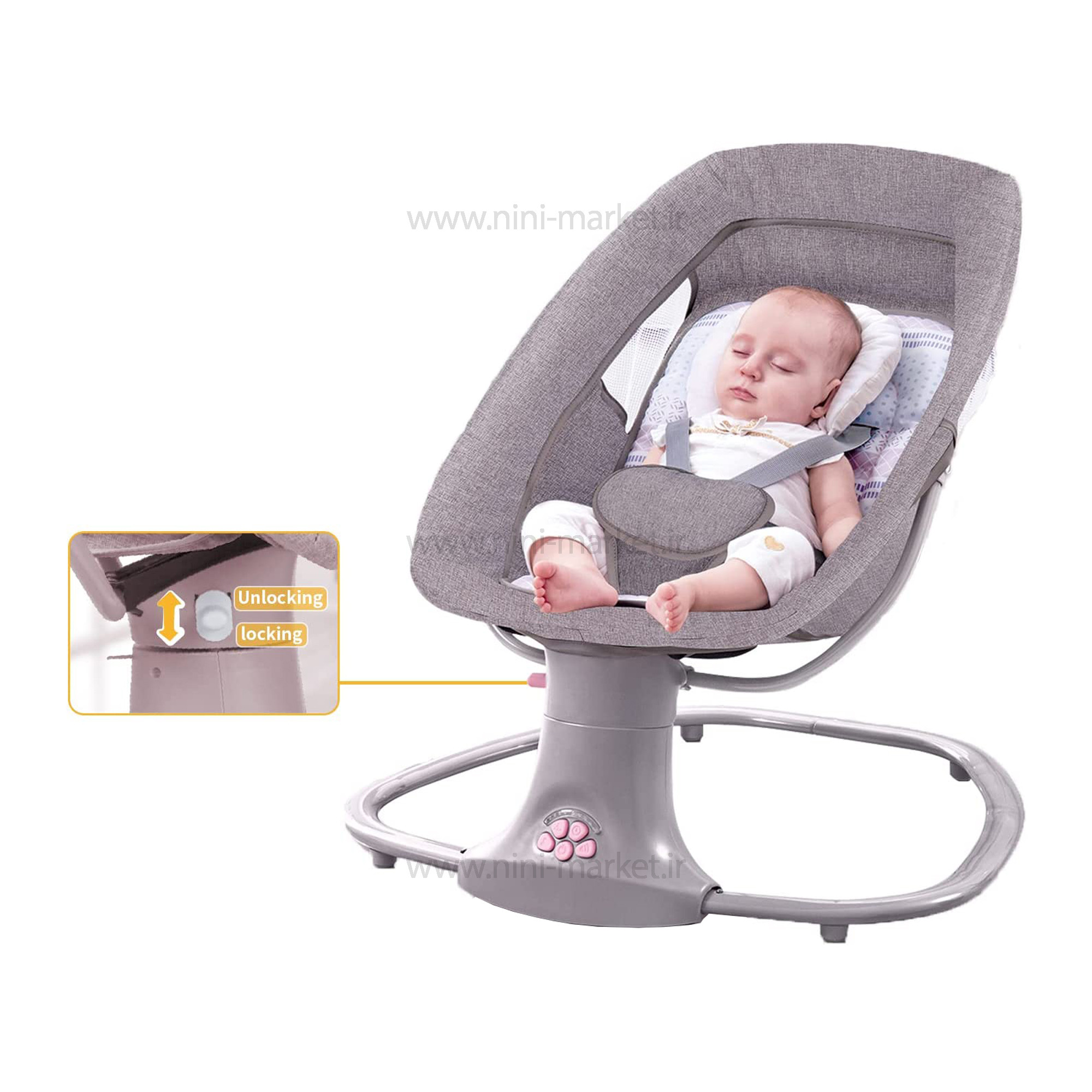 موسیقی داخلی و کنترل از راه دور: این صندلی راک دارای 15 ملودی موسیقی مختلف است که می توانید آنها را از طریق تلفن همراه یا USB پخش کنید. علاوه بر این، برای راحتی والدین، صندلی راک را به ریموت کنترل مجهز کرده ایم. به این ترتیب می توانید تنظیمات را بدون ترک مبل انجام دهید.