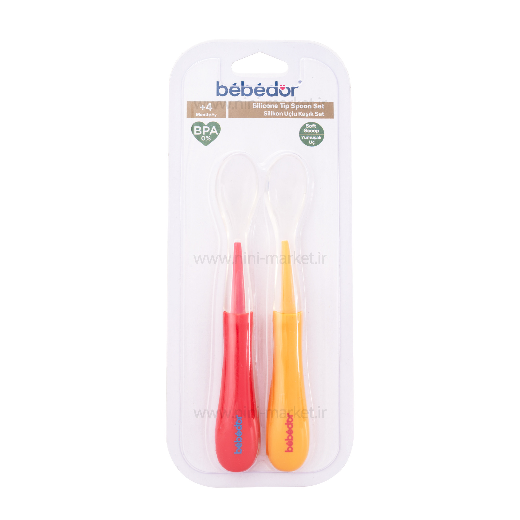 قاشق دو عددي رنگ نارنجی - قرمز ب.ب دور Bebedor
