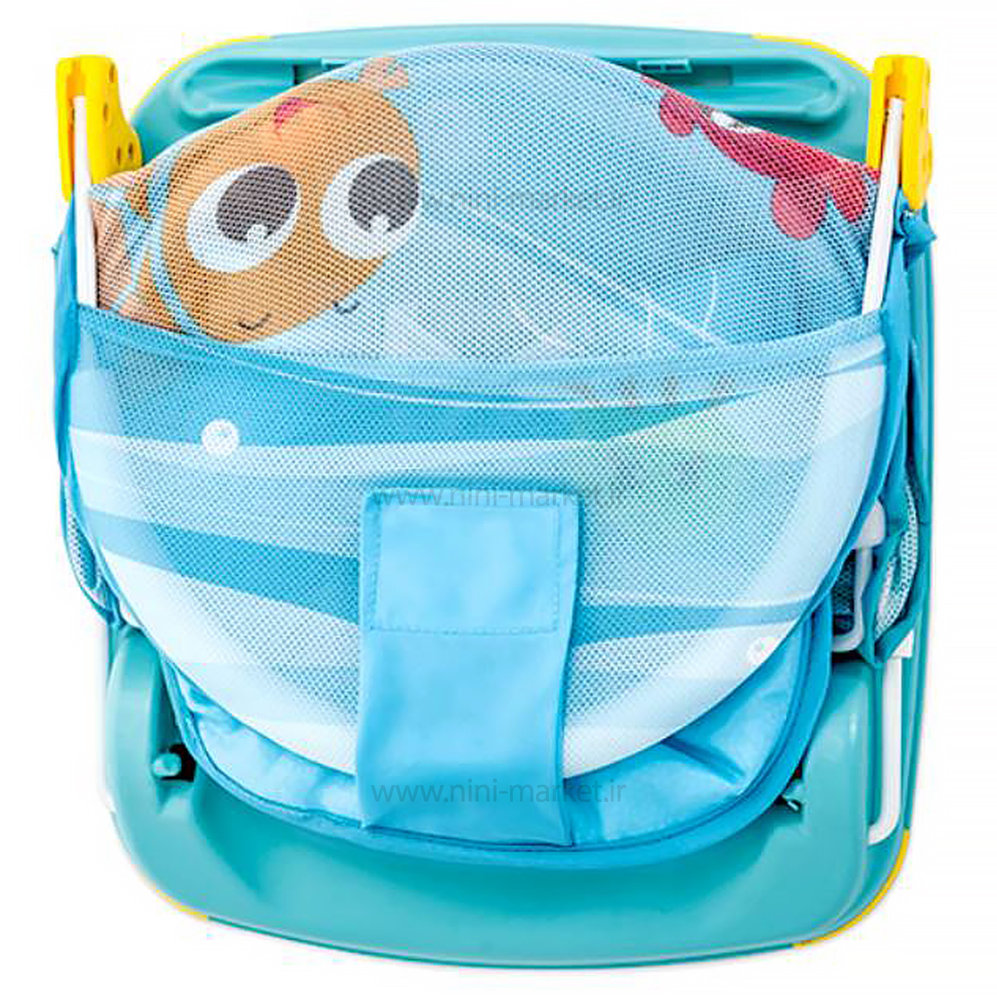آسانشور طرح لاک پشت ماستلا (Deluxe baby bather )مدل 07163 دارای ساختاری توری شکل خواهد بود که برای عبور آب طراحی شده است. زمان حمام میتواند یک فعالیت سرگرمکننده و سرگرمکننده برای نوزادان باشد، و ماستلا دلوکس بچه حمامکننده میتواند این زمان را آرامتر و آرامتر کند. Mastela Deluxe Baby Bather دارای پارچه توری نرم و پایه محکم است. از یک ماده ضد لغزش تشکیل شده است که حمایت بیشتری را برای نوزادان فراهم می کند. این حمام نوزاد از نوع تاشو است که حمل آن را آسان می کند. حالت های چندگانه دراز کشیدن این حمام کننده ماستلا دلوکس راحت ترین حالت را برای کودک شما فراهم می کند که آن را به انتخابی عالی برای کودک شما تبدیل می کند. برای استفاده روزمره مناسب است و به راحتی با لباس تمیز پاک می شود. بالای آسان شور بالشتکی نرم قرار دارد که میتوان سر نوزاد را روی آن قرار دهیم و با تنظیم پشتی آسان شور، حالتی راحت برای نوزاد ایجاد کنیم. دقت داشته باشید که هرچقدر کودک راحت باشد، والدین دارای راحتی بیشتری هنگام شستشو خواهند بود. جنس بدنه و پارچه آسان شور بهراحتی قابل شستشو است و بعد از هر بار استحمام میتوان آن را در قسمتی قرار داد تا خشک شده و مجددا مورد استفاده قرار دهیم.