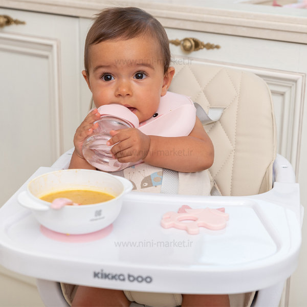 ظرف غذا و قاشق حرارتی صورتی کیکابو Kikkaboo باعث میشود کودک شما از غذا خوردن بیشتر لذت ببرد و حتی به غذا خوردن ترغیب شود. کودکان اگر ظرف غذاخوری مخصوص به خودشان را داشته باشند بیشتر به غذاخوردن ترغیب می شوند.ظرف غذا و قاشق حرارتی کودک کیکابو برای کودکانی که به سن غذا خوردن رسیده اند، بسیار محصول مناسبی است. زیرا این ظرف دارای طراحی فوق العاده جذاب بوده و انگیزه غذا خوردن را در کودکان ایجاد میکند. در ساختار این محصول هیچگونه مواد شیمیایی به کار نرفته، پس با خیال آسوده غذا را در ظرف غذای صورتی کیکابو ریخته تا فرزند دلبندتان میل نماید. بر روی درب این محصول یک عدد قاشق حرارتی قرارداده شده که دمای غذا را سنجیده، اگر دما بیش از حد بالا باشد، رنگ قاشق تغییر کرده و به شما هشدار میدهد. ظرف غذا و قاشق حرارتی کیکابو دارای دو دسته منحنی شکل بوده که گرفتن محصول را برای شما آسان میکند، همچنین در زیر این محصول پایه ای قرار دارد که میتوانید آن را بر روی هر سطح صافی بگذارید. در قسمت زیر این ظرف غذا صورتی کاپی قرار دارد که از واژگونی ظرف جلوگیری می کند.قاشق های حرارتی کیکابو، زمانی که دمای غذا بیش از ۳۷ درجه سانتی گراد باشد واکنش تغییر رنگ را از خود نشان می دهد. برند کیکابو که یک برند اروپایی در تولید لوازم کودک می باشد. در تولید لوازم سیسمونی با کیفیت و استاندارد های اروپایی سابقه طولانی دارد.