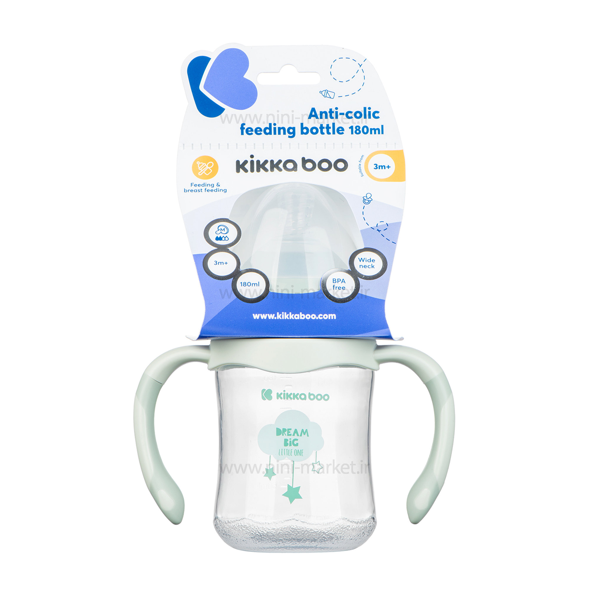 شیشه شیر آنتی کولیک 180 میل رنگ سبز کیکابو Kikkaboo