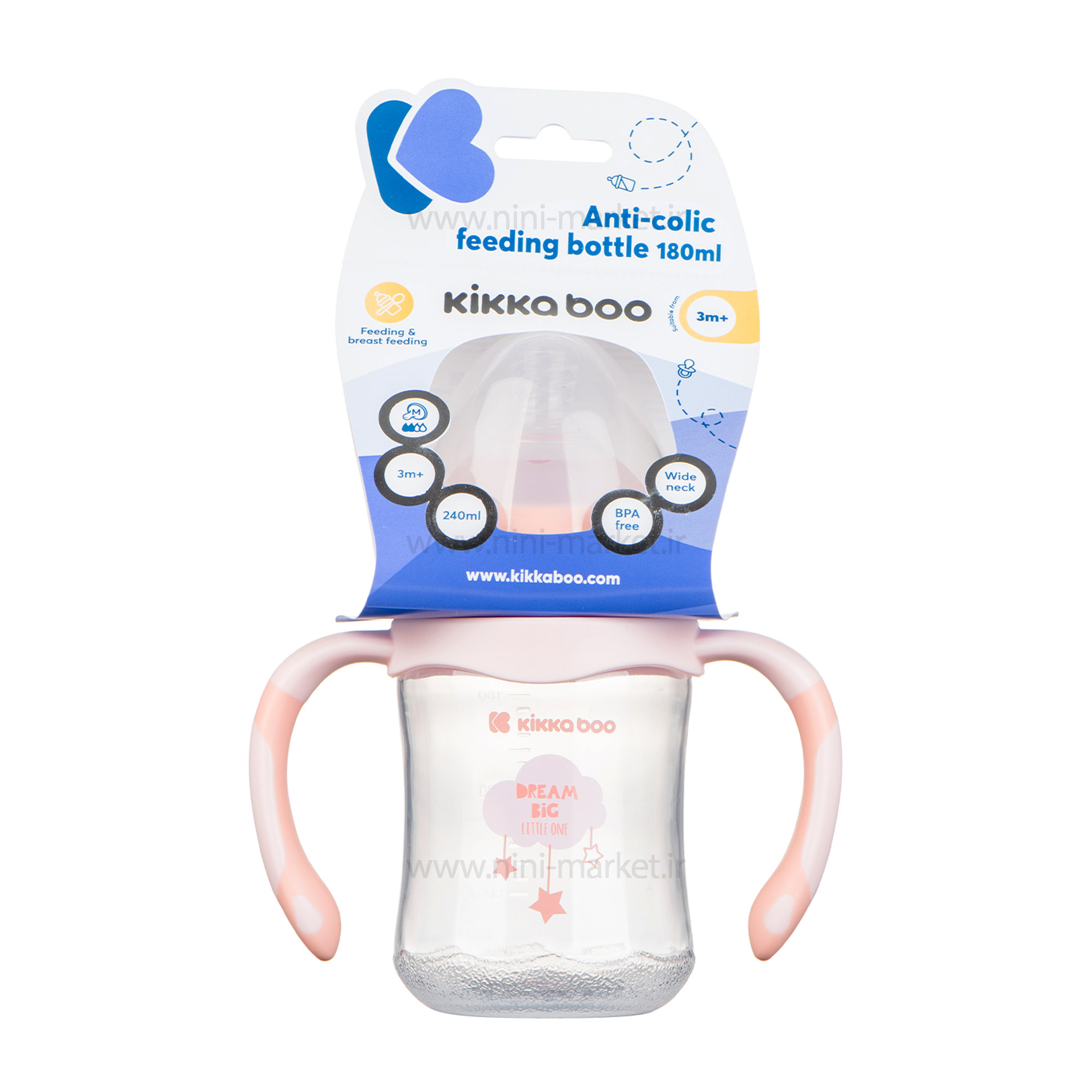 شیشه شیر آنتی کولیک 180 میل رنگ صورتی کیکابو Kikkaboo