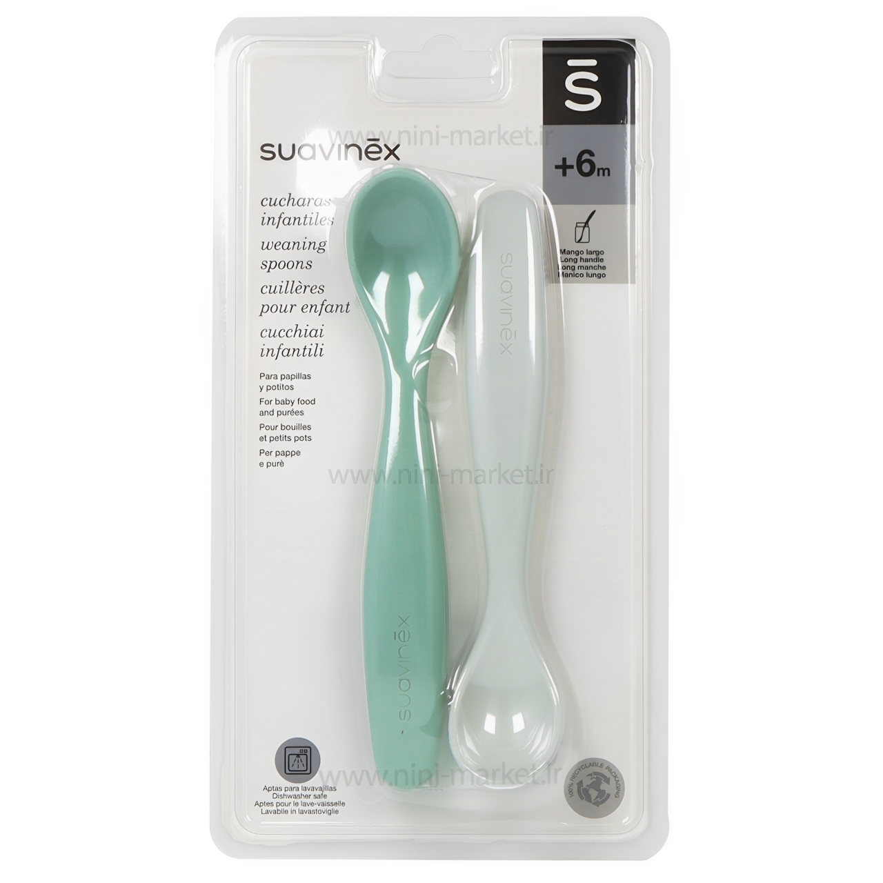 قاشق غذاخوری دو عدد سواوینکس با شکل ارگونومیک در مرحله شیرگیری بسیار مفید است. طراحی دستگیره با لبه های گرد است و شکل خمیده آن باعث می شود کودک و مادر راحت و ایمن از آن استفاده کنند و آسان است. قاشق دو عددی سواوینکس Suvainex محصول کشور اسپانیا می باشد. اندازه دسته، انحنا و گرد بودن قاشق ایمنی و راحتی را در هنگام تغذیه تضمین می کند و لثه های حساس کودکان را تحریک نمی کند. قاشق جنس پلی پروپلین که به دهان و دندان کودک آسیبی نمی رساند و حتی در دوران دندان درآوردن نوزاد، سری قاشق هیچ فشاری به لثه و دندان نوزاد وارد نمی کند. قاشق کودک طراحی زیبا و مقاومی دارد و دسته آن ارگونومیک و مناسب برای به دست گرفتن نوزاد است. قاشق سواوینکس دارای دسته بلند می باسد که از کیفیت ساخت بالایی برخوردار است و فاقد مواد مضر مانند بیسفنول آ می باشد. این قاشق مناسب برای کودکان بالای 6 ماه است. قاشق قابل شستشو به صورت دستی و یا با ماشین ظرف شویی می باشد.