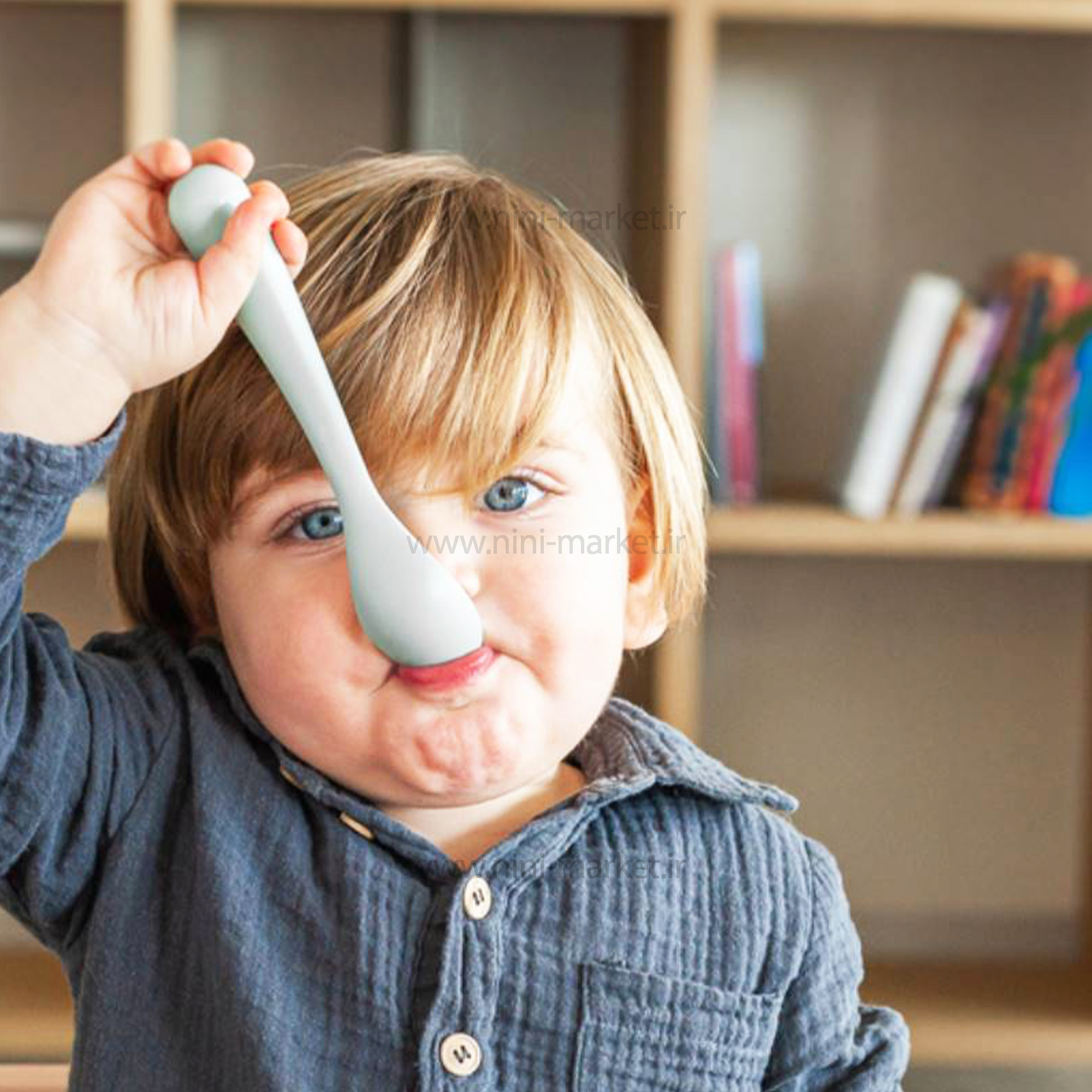 قاشق دو عددی رنگ سبز طوسی +6 ماه سواوینکس Suvainex