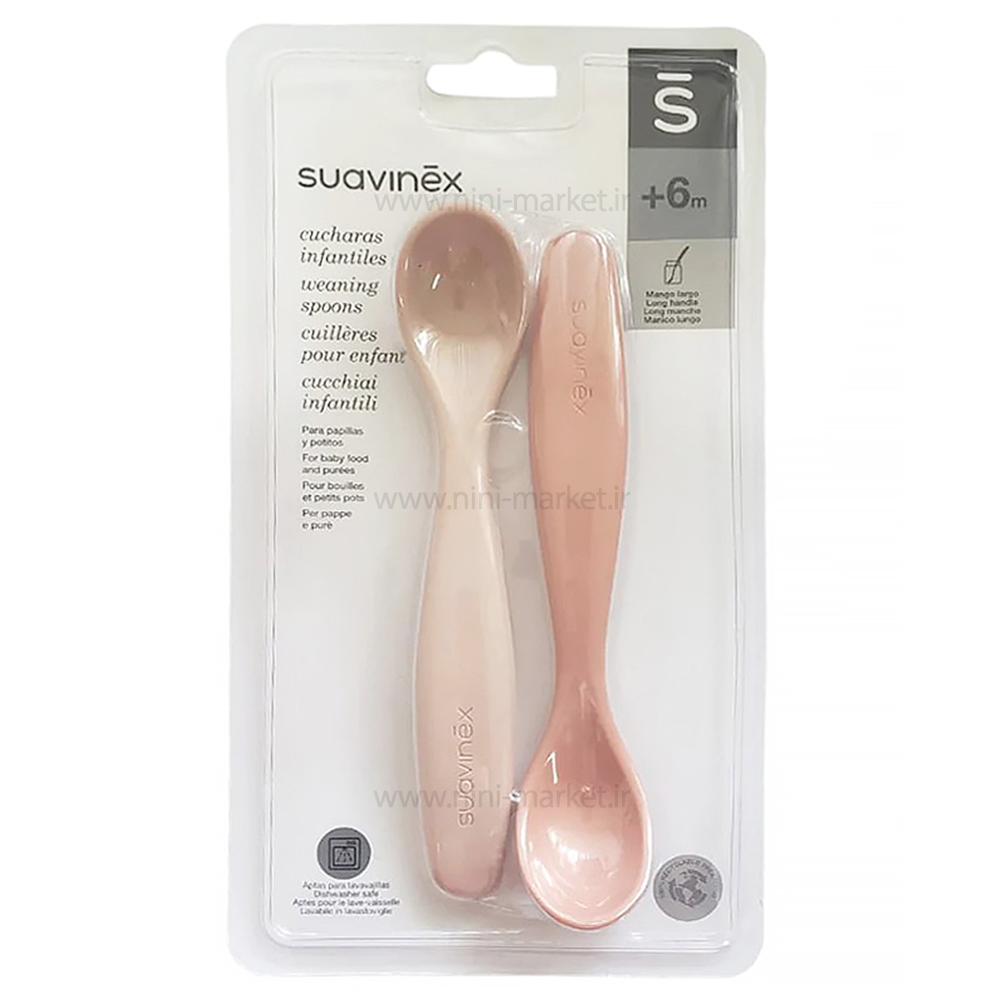 قاشق دو عددی رنگ صورتی گلبهی +6 ماه سواوینکس Suvainex