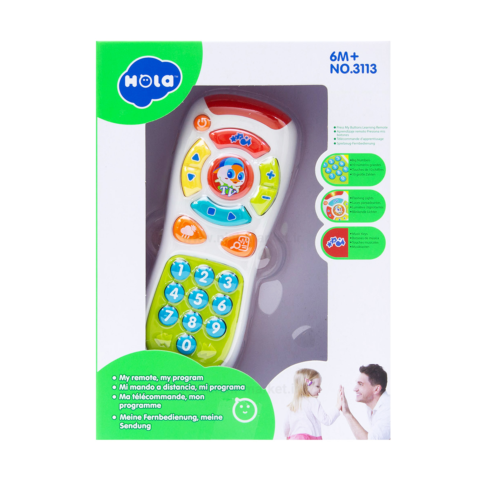 ریموت کنترل آموزشی هولی تویز مدل 3113 یک اسباب بازی فان و جالب برای کودکان بالای 6 ماه می باشد . کنترل آموزشی هویلی تویز وسیله ی کاربردی هم برای سرگرمی، هم برای آموزش های مختلف به فرزندان شما است از جمله این آموزش ها آموزش زبان به نونهالان می باشد. بر روی این کنترل دکمه ی روشن و خاموش تعبیه شده . دکمه ی تعویض کانال ، دکمه ی پخش موسیقی های جذاب برای افزایش هوش موسیقیایی کودک ، دکمه ی تنظیم حجم صدا برای زیاد و کم کردن صدا ، دکمه ی شروع و توقف ، دکمه ی اعلام وضع هوا ، دکمه ی تنظیم و دکمه ی عددها از جمله دکمه های کاربردی دیگر این محصول است با این محصول کودکان اعداد و وضعیت های آب و هوا را به خوبی میشناسند.