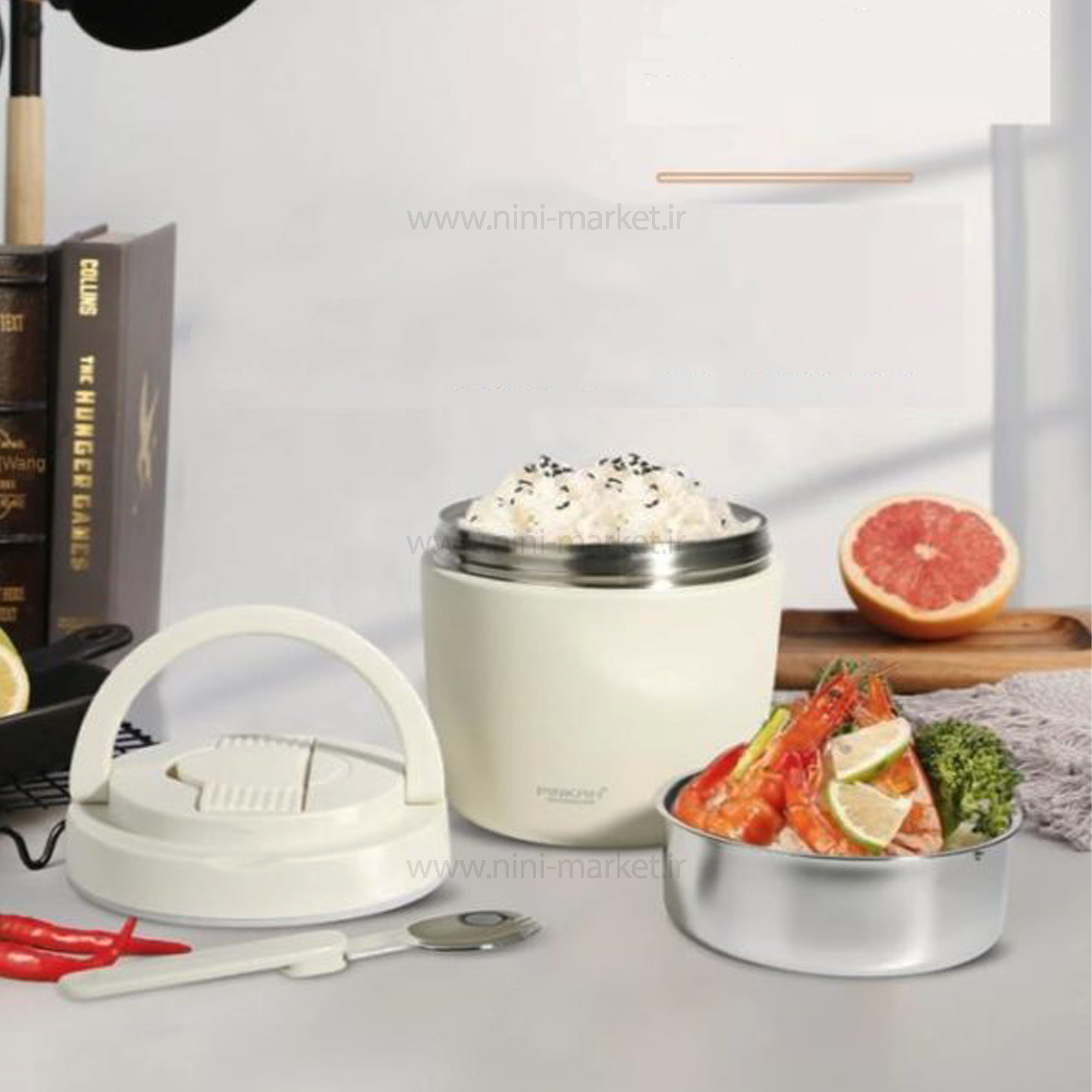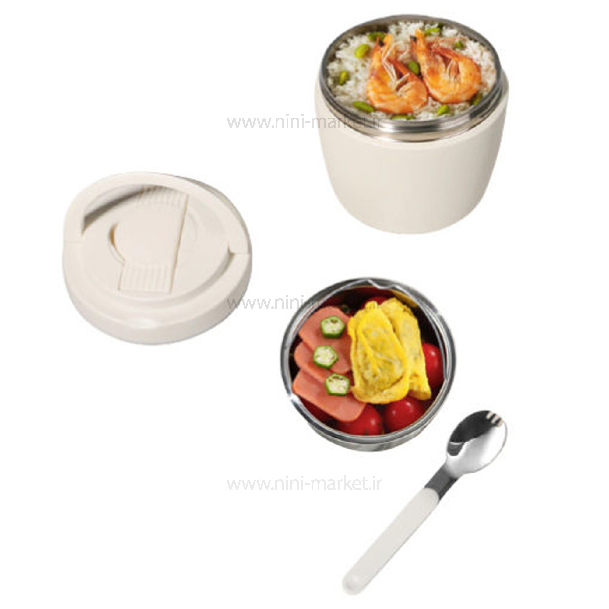 فلاسک غذا دو محفظه ای رنگ کرم پینکا Pinkah