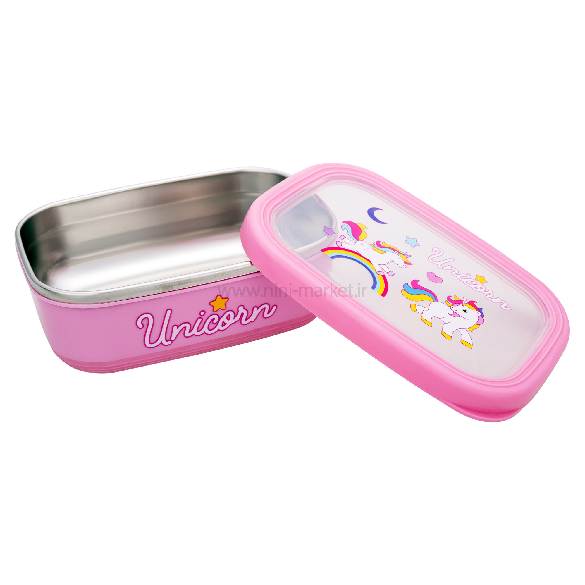 ظرف غذا بزرگ داخل استيل طرح اسب تک شاخ رنگ صورتی برند خارجي