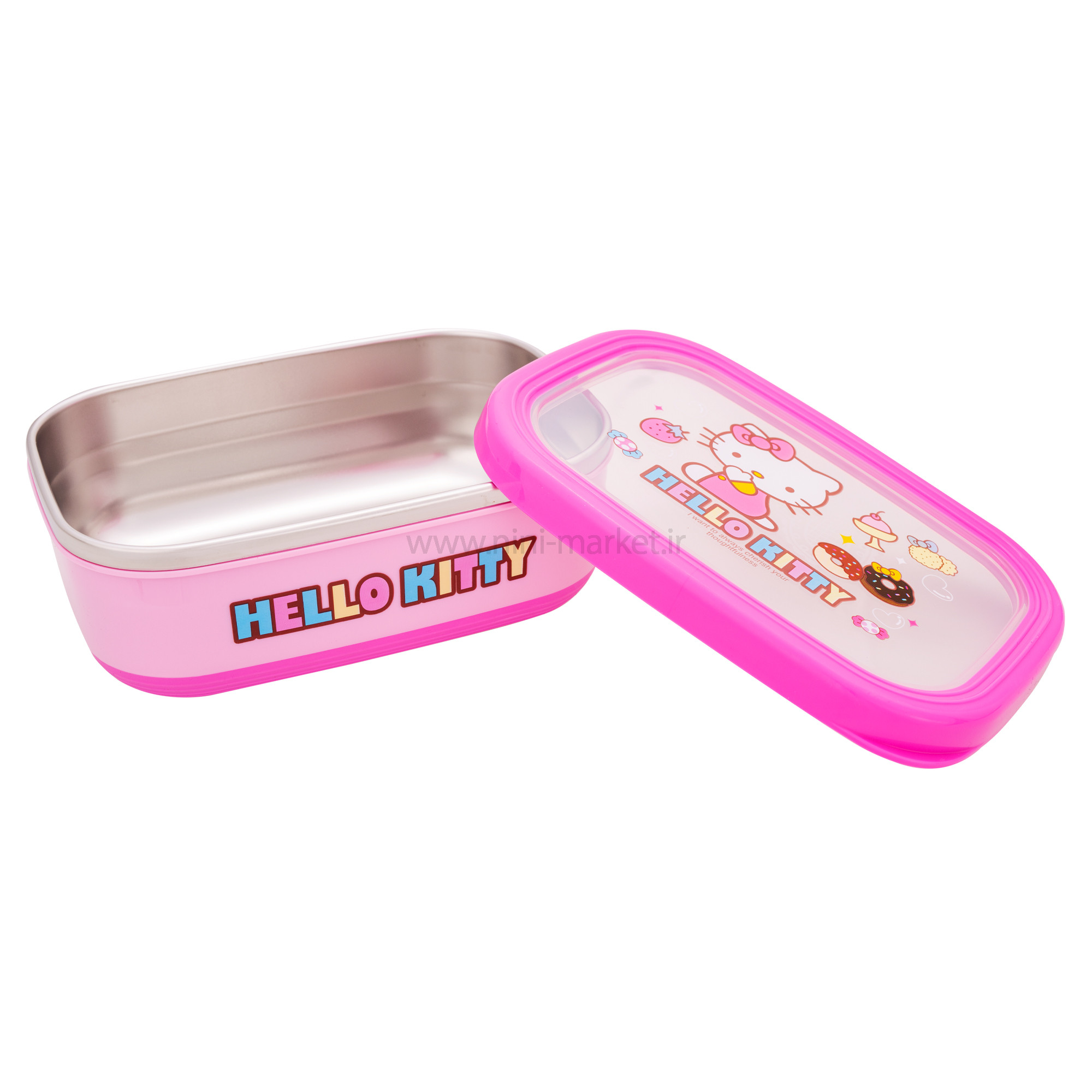 ظرف غذا بزرگ داخل استيل طرح کیتی رنگ صورتی برند خارجي