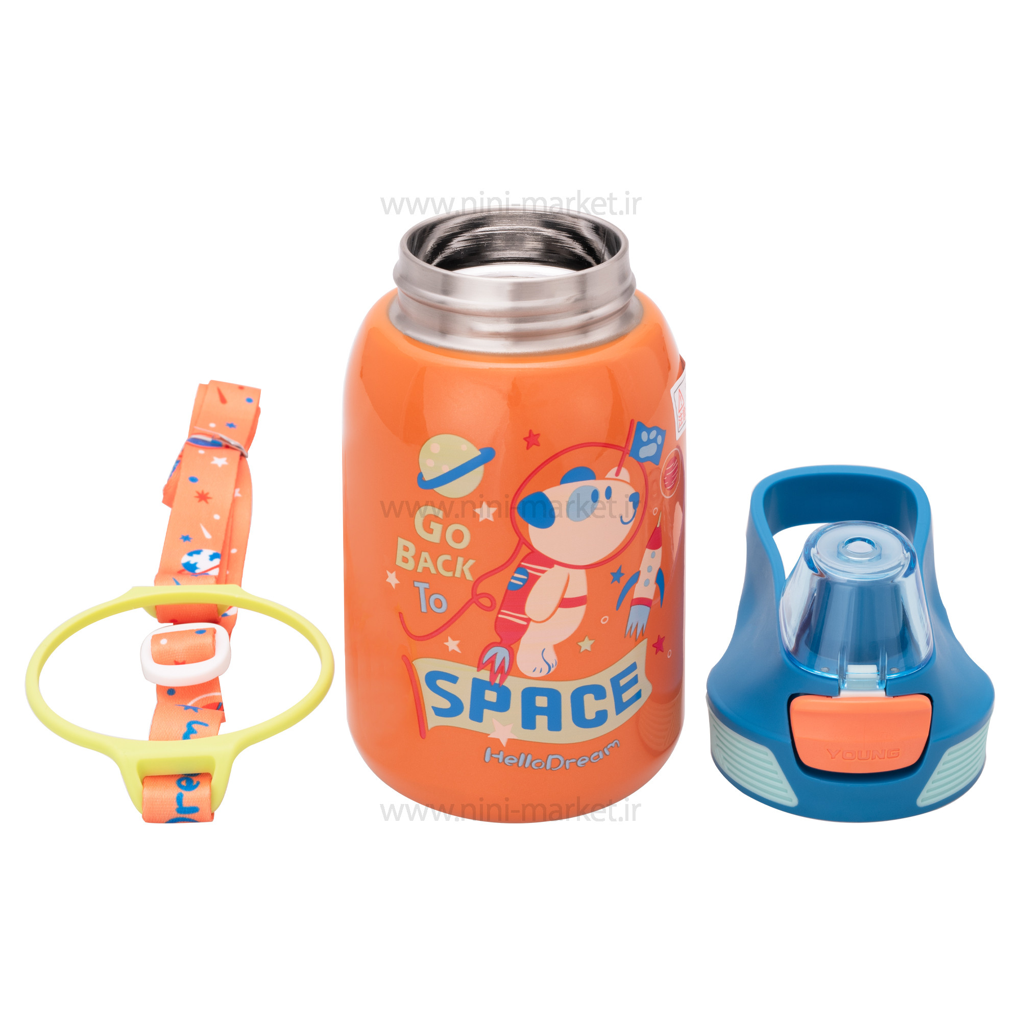 فلاسک استیل طرح دار رنگ نارنجی هلو دریم Hello Dream یک فلاسک شیک با طراح فانتزی و جذاب برای مشکل پسندان است . فلاسک آب هلودریم عایق از فولاد ضد زنگ کودکان دارای واشرهای سیلیکونی است که یک مهر و موم کامل در دهانه فلاسک دارد که اطمینان می دهد که هنگام حمل، نگهداری یا نگهداری این بطری هیچ نشتی وجود ندارد. استفاده شده. حمل آسان و سبک با دستگیره حمل با طراحی ارگونومیک و ساختار نرم و در عین حال مستحکم، می توانید مطمئن باشید که برخلاف اکثر بطری های عایق، این بطری آب دست و پا گیر نیست و حمل آن دردناک نیست. ساخته شده از فولاد ضد زنگ 316 درجه مواد غذایی با کیفیت بالا، این بطری های آب خودکار بچه ها مایعات شما را به مدت 24 ساعت سرد و نوشیدنی های شما را تا 12 ساعت گرم نگه می دارد. با تکنولوژی عایق عالی فلاسک دمای مورد نیاز کودک را محکم نگه دارید. حتی زمانی که چمدان بسیاری از بیرون رفتن، آرامش خاطر به دلیل درپوش ساختار امدادی که بدون نشتی بسته می شود حتی در یک کیسه قرار می گیرد. رنگ فلاسک به رنگ نارنجی و در آن به رنگ آبی می باشد که توسط یک دکمه میتوان آن را باز کرد و همچنین طرح روی فلاسک یک سگ فضانورد و موشک و کره ای زمین می باشد که به صورت چاپ درآمده است. همراه با این فلاسک یک بند بلند طرح دار به جنس پارچه ای وجود دارد که آن راه به راحتی میتوان به دهانه فلاسک وصل کرد و آن را به دوش انداخت یا به جایی آویزان کرد .