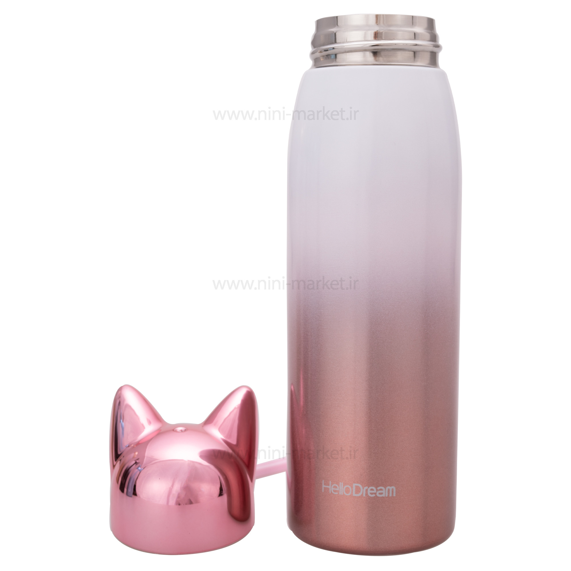 فلاسک آب استيل طرح گربه رنگ صورتي هلودریم Hello dream