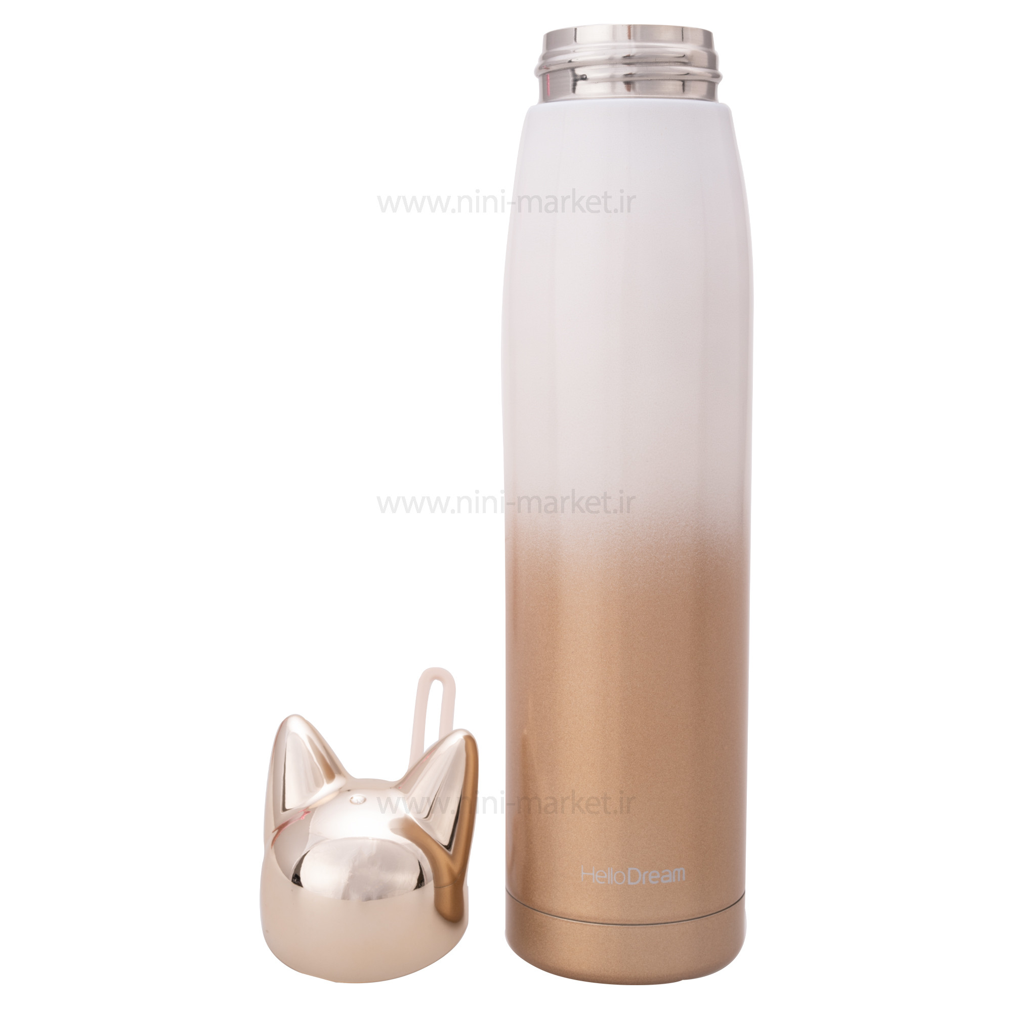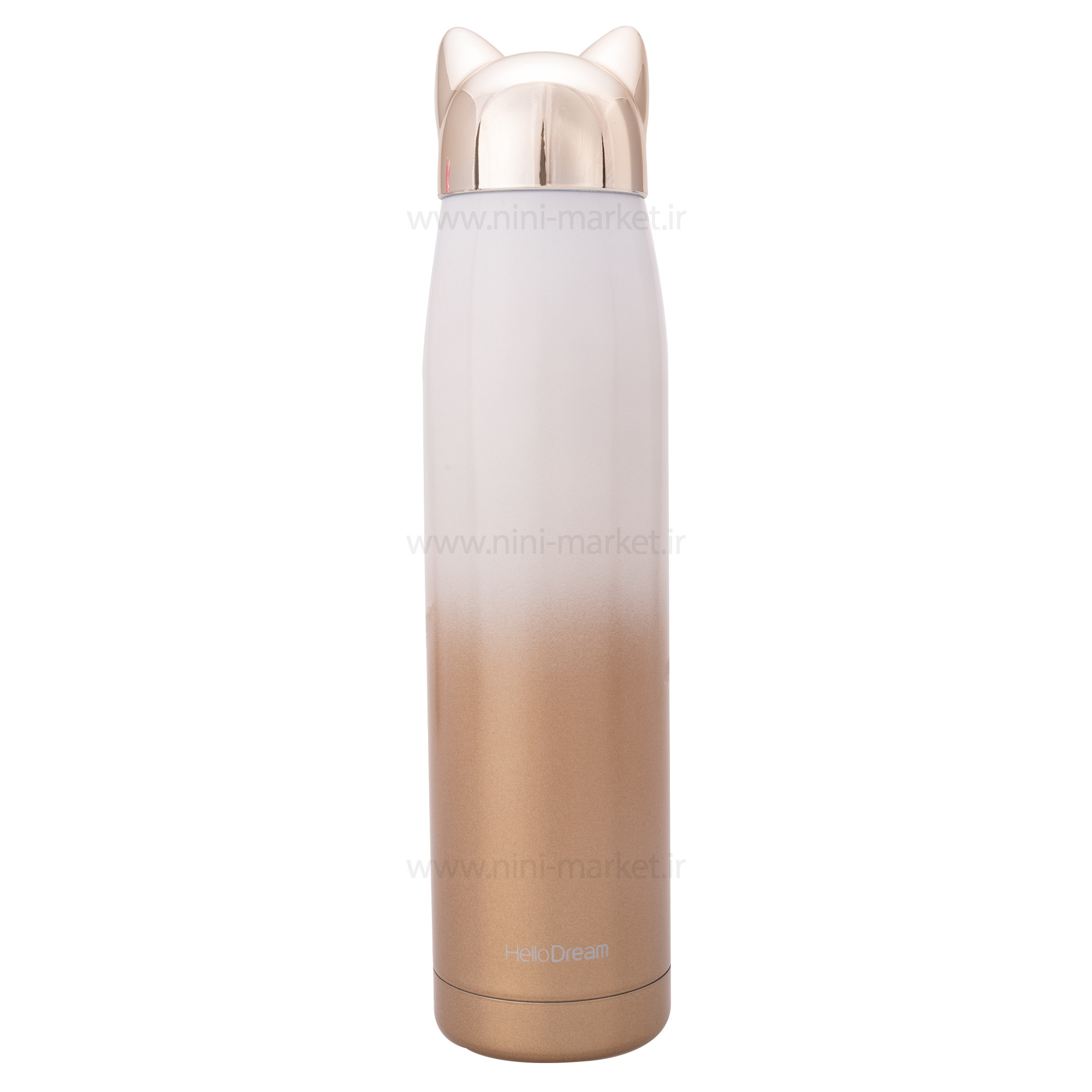 فلاسک آب استيل طرح گربه رنگ طلایی هلو دریم Hello dream