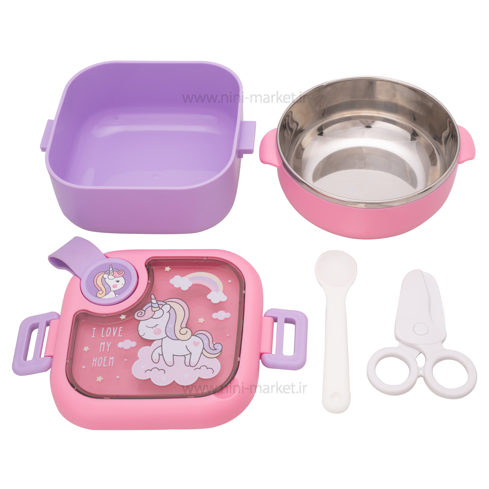 ظرف غذا چند منظوره طرح اسب تک شاخ رنگ صورتی برند خارجي