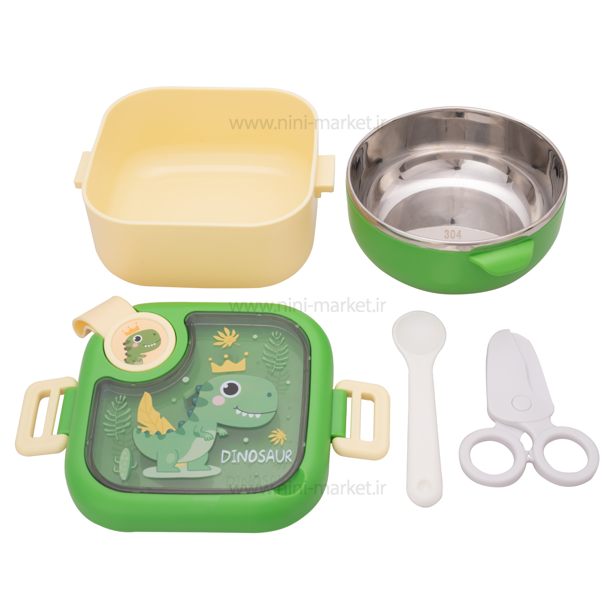 ظرف غذا چند منظوره طرح دايناسور رنگ سبز برند خارجي